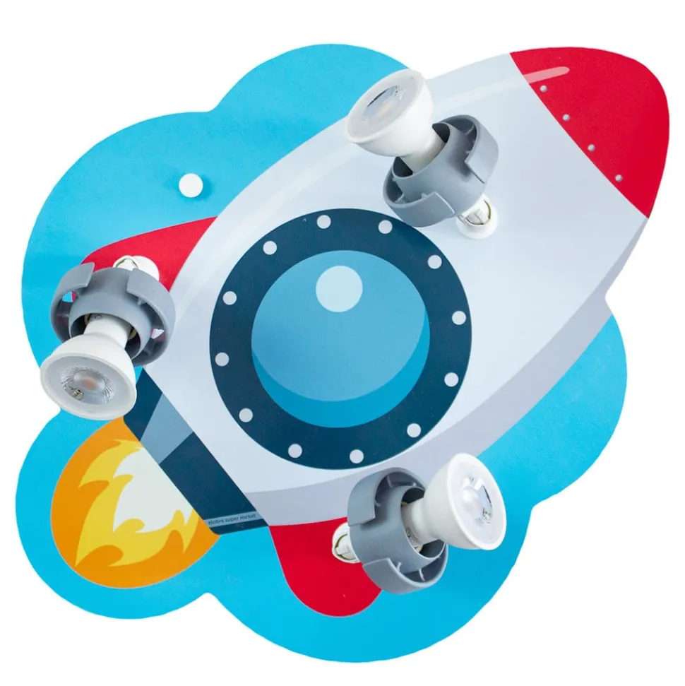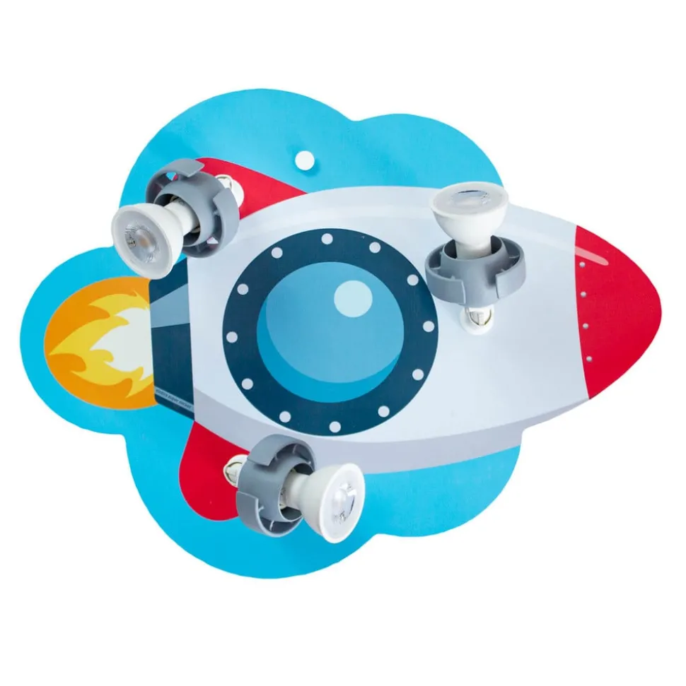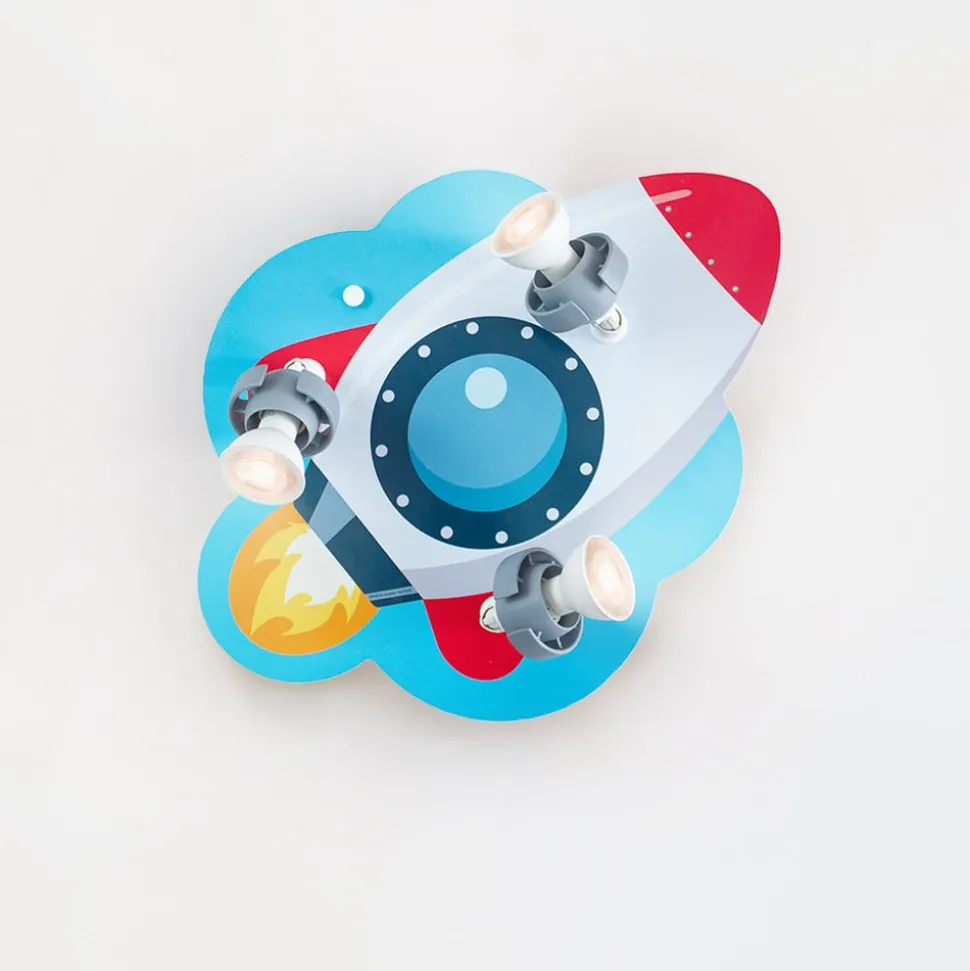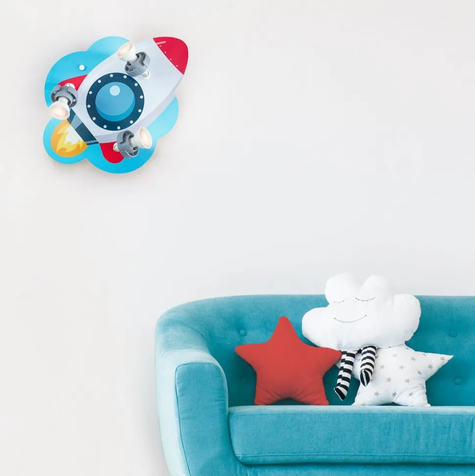 RAKETE kinderkamer wandlamp voor kleine astronauten en ruimtehelden Die in Duitsland geproduceerde hoogwaardige wandlamp voor de kinderkamer met raket is uitgerust met drie beweegbare spots die op een houten paneel zijn gemonteerd. Dit is liefdevol ontworpen en geschilderd en toont een kleine ruimteraket op weg naar de sterren. Die brengt niet alleen genoeg licht in de kinderkamer, maar stimuleert ook de verbeelding van de kleintjes.
