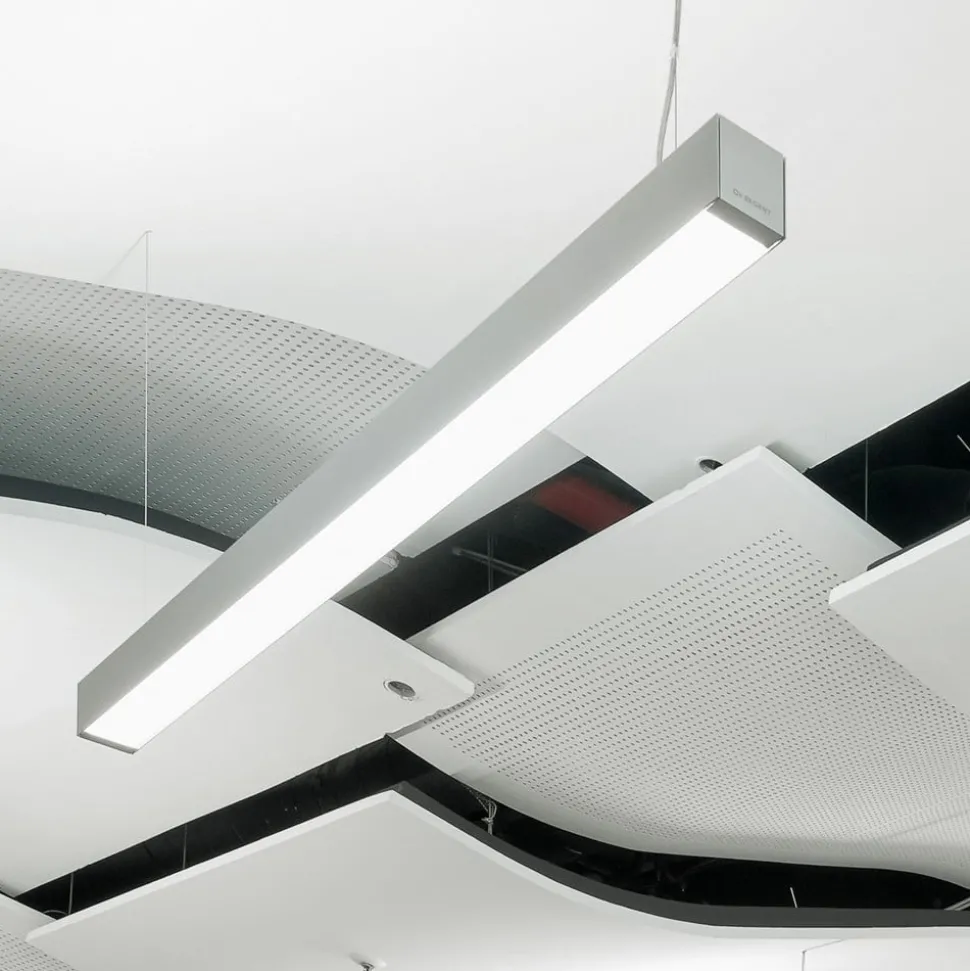 Langwerpige Channel S Up C-LED pendelarmatuur – modern designDe LED-pendelarmatuur Channel S Up C-LED verlicht kantoren, ontvangstruimten en andere locaties zeer efficiënt en fungeert bovendien als elegant inrichtingselement. Met haar slanke behuizing van natuurlijk geanodiseerd aluminium en microprismatische CLD-diffusor (Controlled Luminance Diffuser) van gesatineerd polycarbonaat produceert ze een effectieve, schaduwvrije en tegelijk decoratieve lichtlijn met directe (40 %) en indirecte (60 %) lichteffecten. Ook het plafond wordt aangenaam verlicht. Voorschakelapparatuur inbegrepen- dimbaar (DALI)- perfecte verblindingsbescherming voor standaard kantoorverlichting- max. 3.000 cd/m²- geen zichtbare schroeven- hoge lichtstroom: tot 1.500 lm/m- slagvastheidsklasse: IK08