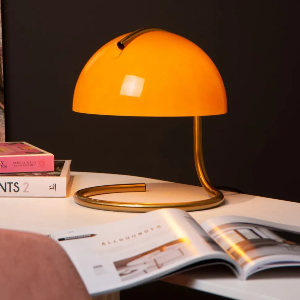 Retro-tafellamp Cato met melkglazen kap oranje