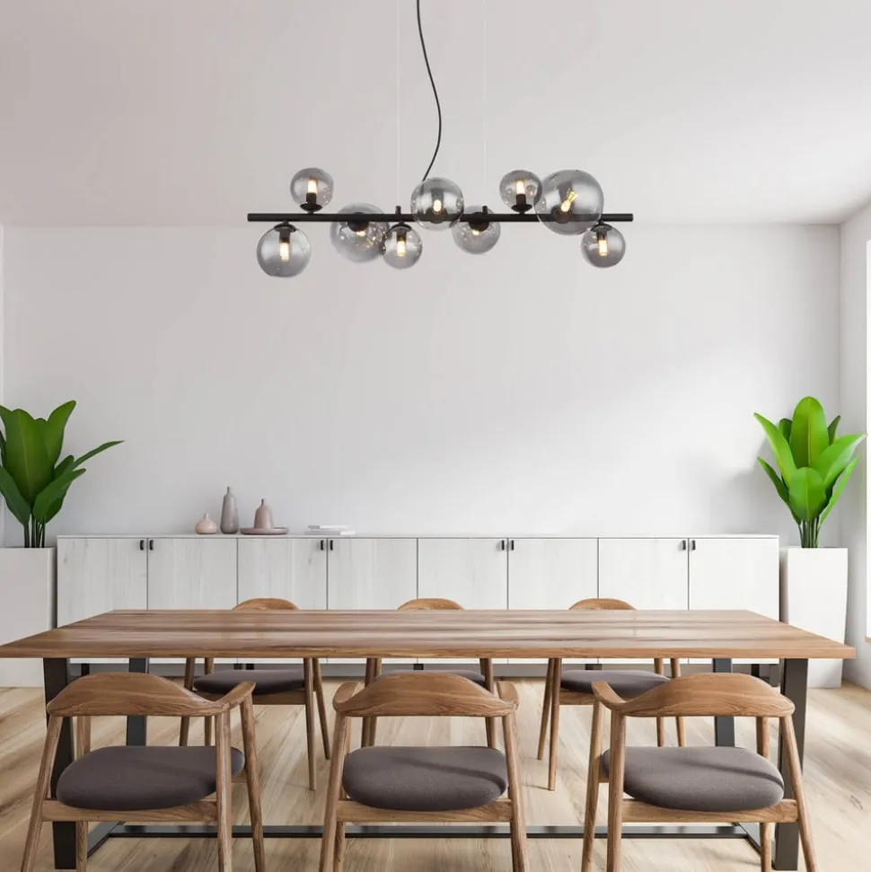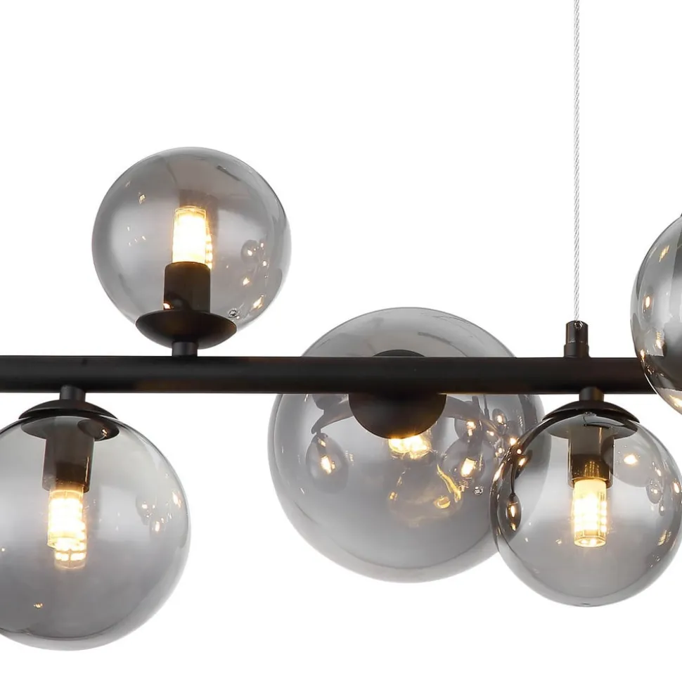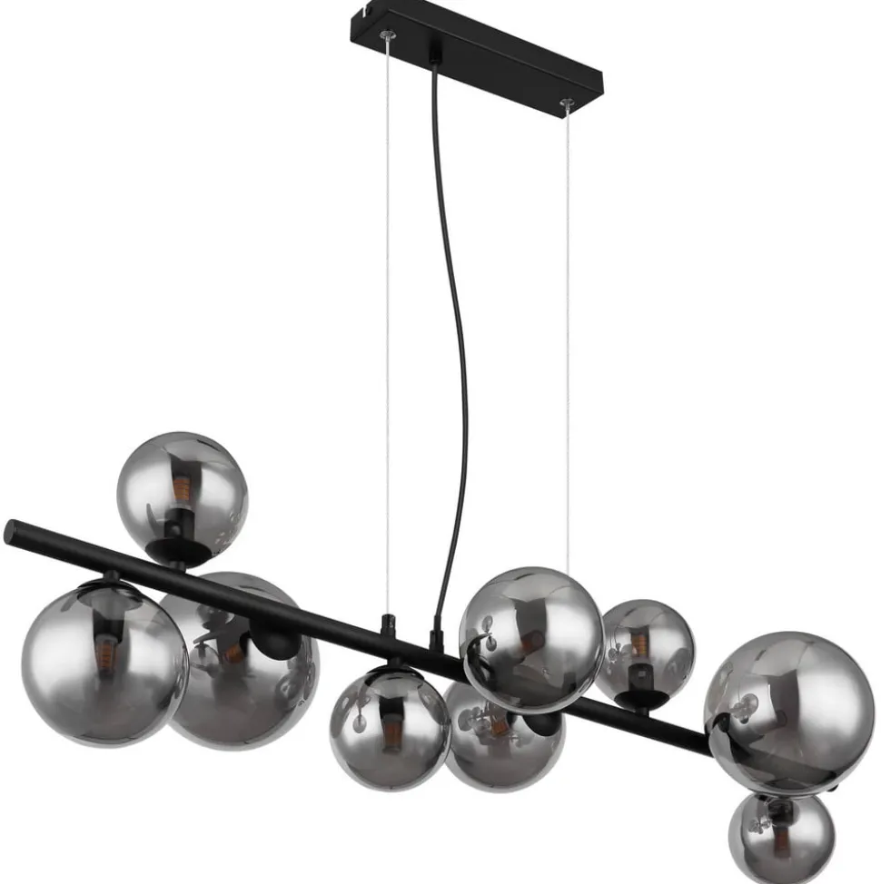 Riha hanglamp, lengte 87 cm, zwart/rookkleurig, 9-lamps.