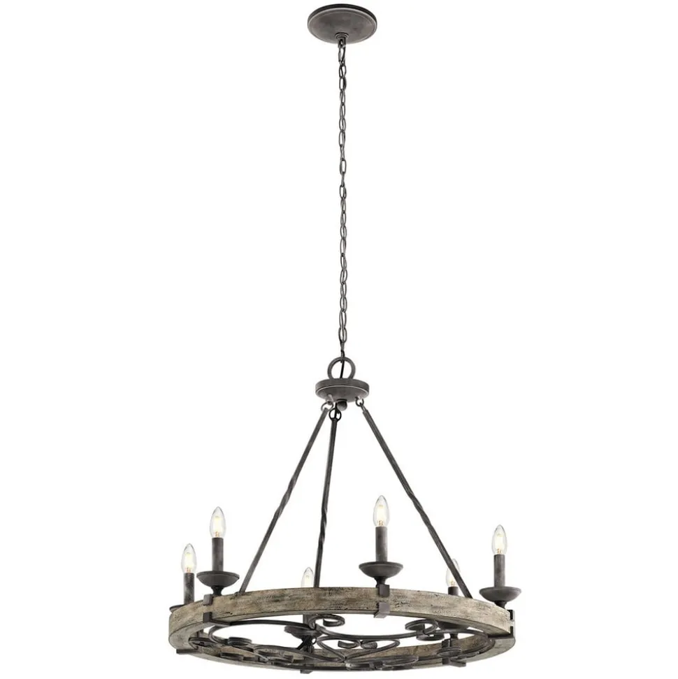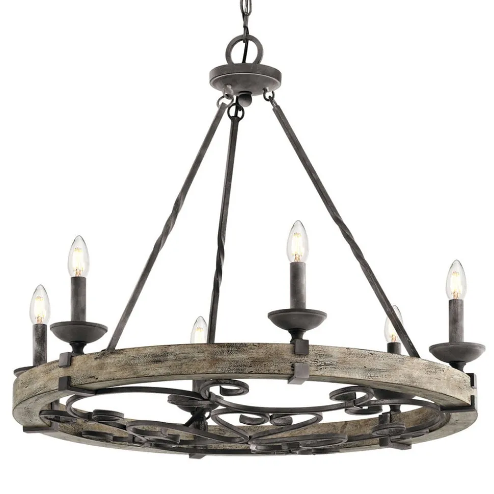 Deze rustieke Taulbee kroonluchter zorgt niet alleen voor veel licht, maar ook voor een grote portie historische flair. De kroonluchter is geschikt voor zowel de keuken als de slaapkamer, de woonkamer of de gang. De houten krans met grijsachtige pigmentatie zorgt voor een middeleeuwse sfeer.