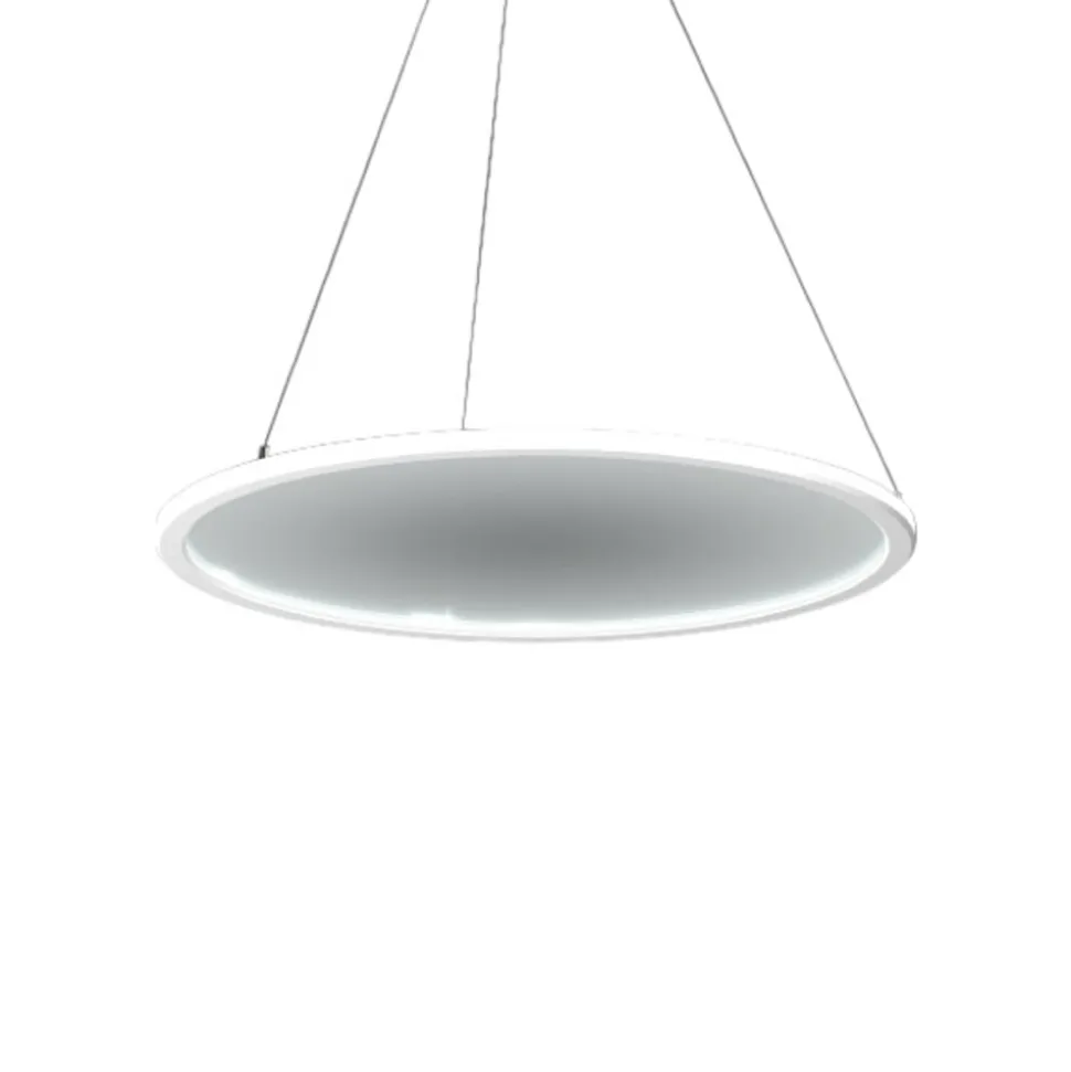 Ronde LED-pendelarmatuur Sidelite ECODe ronde LED-pendelarmatuur Sidelite ECO met een frame uit wit gepoedercoat aluminium en een diffuser uit PMMA is dankzij UGR <19 perfect geschikt voor kantoorruimtes en computerwerkplekken. Dankzij de zijdelingse lichtinjectie wordt het licht bovengemiddeld homogeen verspreid. Het licht wordt voor 50 % direct en voor 50 % indirect uitgestraald. Diffusor en lichtgeleider zijn gemaakt van niet vergelende kunststof (PMMA). De ophanging door middel van een 3-punts staalkabelophanging doet de armatuur bijna zwevend lijken en maakt individuele ophanging tijdens de installatie mogelijk. De voorschakelapparatuur is in de kap gemonteerd.- Levensduur L80/B50 50000 uur- Geschikt voor kantoren en computerwerkplekken volgens DIN EN 12464-1- Slagvastheidsindex IK03