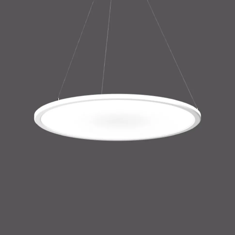 Ronde LED-pendelarmatuur Sidelite ECODe ronde LED-pendelarmatuur Sidelite ECO met een frame uit wit gepoedercoat aluminium en een diffuser uit PMMA is dankzij UGR <19 perfect geschikt voor kantoorruimtes en computerwerkplekken. Dankzij de zijdelingse lichtinjectie wordt het licht bovengemiddeld homogeen verspreid. Het licht wordt voor 50 % direct en voor 50 % indirect uitgestraald. Diffusor en lichtgeleider zijn gemaakt van niet vergelende kunststof (PMMA). De ophanging door middel van een 3-punts staalkabelophanging doet de armatuur bijna zwevend lijken en maakt individuele ophanging tijdens de installatie mogelijk. De voorschakelapparatuur is in de kap gemonteerd.- Levensduur L80/B50 50000 uur- Geschikt voor kantoren en computerwerkplekken volgens DIN EN 12464-1- Slagvastheidsindex IK03