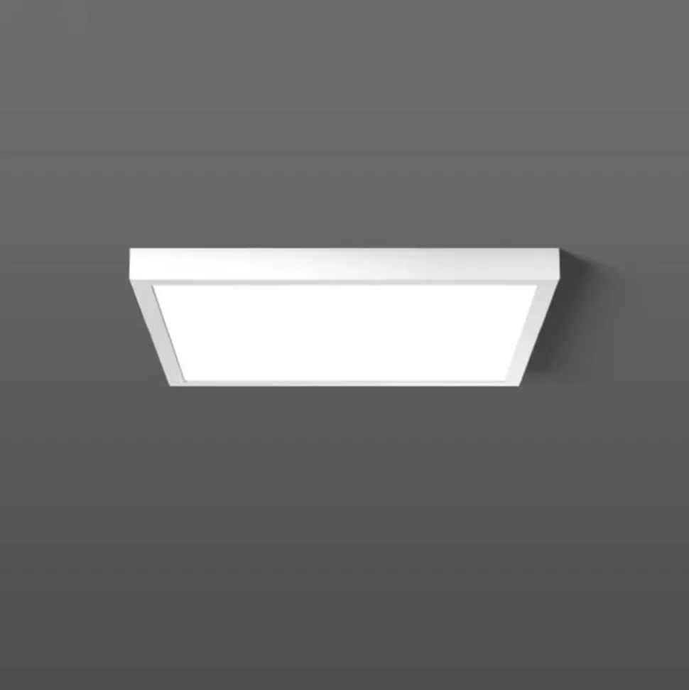 LED plafondarmatuur Sidelite ECO vierkant met multi-lumen functieSidelite ECO is een zeer economische opbouwarmatuur met vooruitstrevende LED technologie. Het frame van de vierkante armatuur is van wit gepoedercoat aluminium, het opbouwframe is eveneens van wit gepoedercoat plaatstaal. De opaalwitte lichtverdeler en de lichtgeleider uit hoogwaardige, niet vergelende kunststof (PMMA) zorgen dankzij de zijdelingse lichtinjectie (RZB SIDELITE® technologie) voor een bovengemiddeld homogene lichtverdeling en dus voor een heldere, uiterst energie-efficiënte en gelijkmatige verlichting. Met de Multilumen-functie kan de armatuurlichtstroom via twee in de armatuur geïntegreerde kleine bedieningselementen in vier stappen worden ingesteld. De armatuur is in de fabriek ingesteld op de laagste lichtstroom. Het is goedgekeurd voor gebruik in de levensmiddelen- en drankenindustrie.
