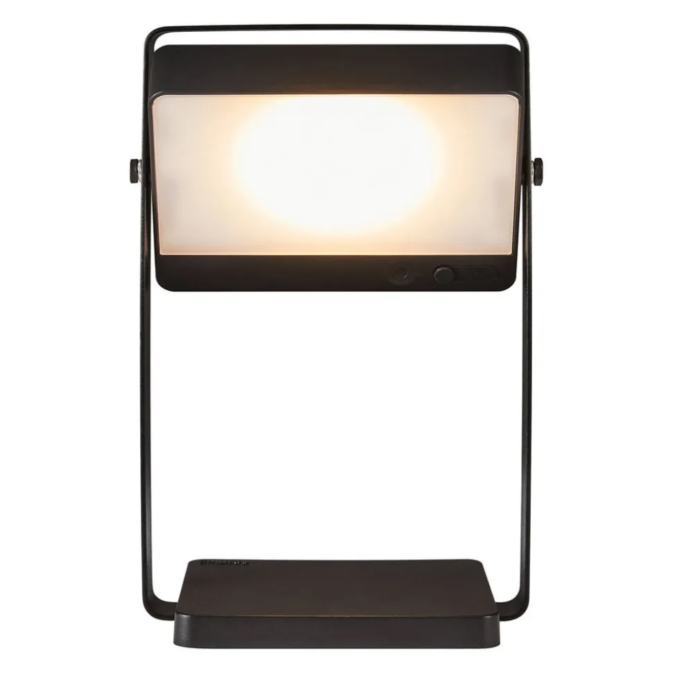 Saulio LED terraslamp met oplaadbare batterij, zonnepaneel en daglichtsensor De Saulio LED tafellamp is een praktische, mobiele lichtbron die niet alleen binnenshuis indruk maakt, maar ook op het terras, in de tuin of op de camping. Saulio is uitgerust met een oplaadbare batterij die kan worden opgeladen via een USB-C ingang (USB-kabel voor droge binnenruimtes is inbegrepen) of via het zonnepaneel op de achterkant van de kop. Dit laatste kan 360° verticaal worden gedraaid in het aluminium frame zodat de warmwitte LED lichtbron aan de voorkant naar wens kan worden gericht. De LED tafellamp kan in drie fasen worden gedimd door meerdere keren op de schakelaar te drukken – Beschermingsgraad: IP44 – Omgevingstemperatuur tijdens gebruik: – 20 °C tot + 35 °C – Bijzonder flexibel: batterijvoeding, oplaadbaar via kabel of zonlicht – Ontwerp door Says Who
