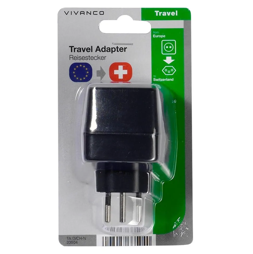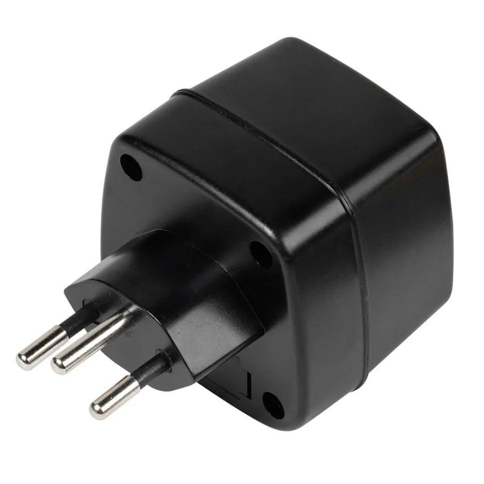 Schweizer reisstekker in zwart De reisstekker past een Schuko stekker aan op een BUCHE stopcontact. Hij bevat een kinderslot en een miniatuurzekering van 10A om het apparaat te beschermen. Maximale belasting: 250V, 10A, 50Hz Let op: De reisstekker is geen spannings- en frequentieomvormer.