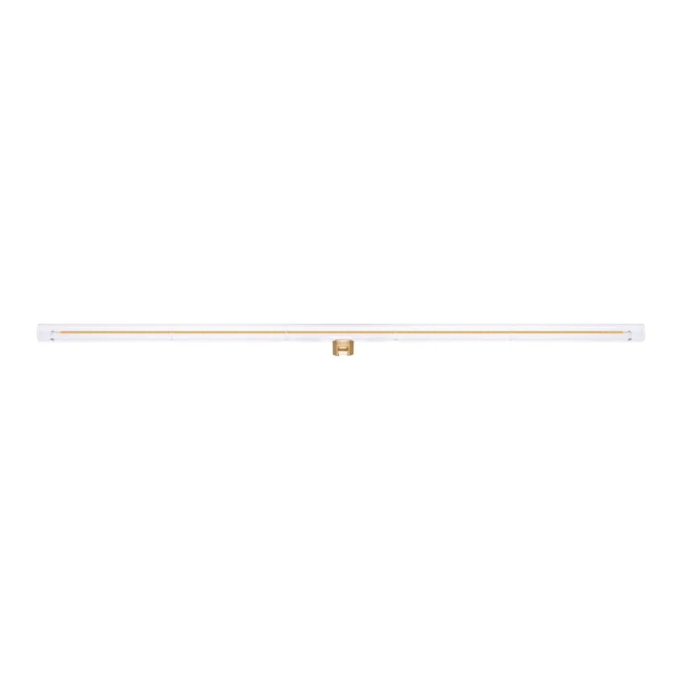 LED lineaire lamp S14d 6W, lengte 100 cm, 2.200 K, helder, dimbaar Deze lange LED lineaire lamp met transparant glas en ingebouwde LED spot straalt zijn extra warme licht rondom uit en kan in helderheid worden aangepast met een externe dimmer – extra warme lichtkleur (2.200 K) – dimbaar met veel gangbare dimmers, bijv. ELTAKO, GIRA, Jung – bijzonder goede kleurweergave Ra >90