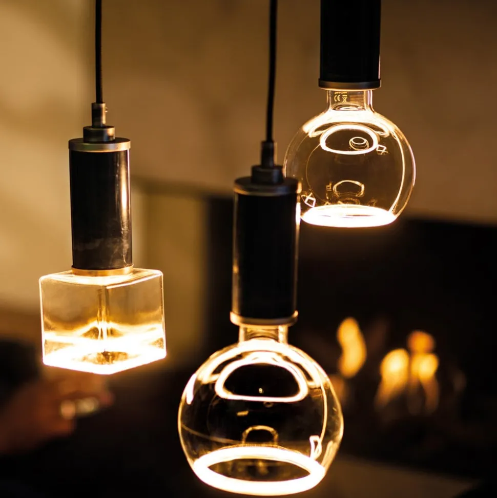 Dimbare LED zwevende gloeilamp G125, E27, 4,5WDe opening aan de bovenkant geeft de LED zwevende gloeilamp een decoratieve uitstraling bij het aan- en uitschakelen. Ze is bijzonder geschikt voor gebruik in open vormgegeven armaturen zonder kap, bijvoorbeeld pendel- of tafelarmaturen. De helderheid van het warme licht kan worden geregeld met een geschikt dimsysteem.- Warme lichtkleur met 2.200 K- Dimbaar met ELTAKO, Jung, GIRA- Zeer goede kleurweergave Ra 90- Bekroond met de Plus X Award 2022/2023 in de categorieën Innovatie, Hoge Kwaliteit en Design.