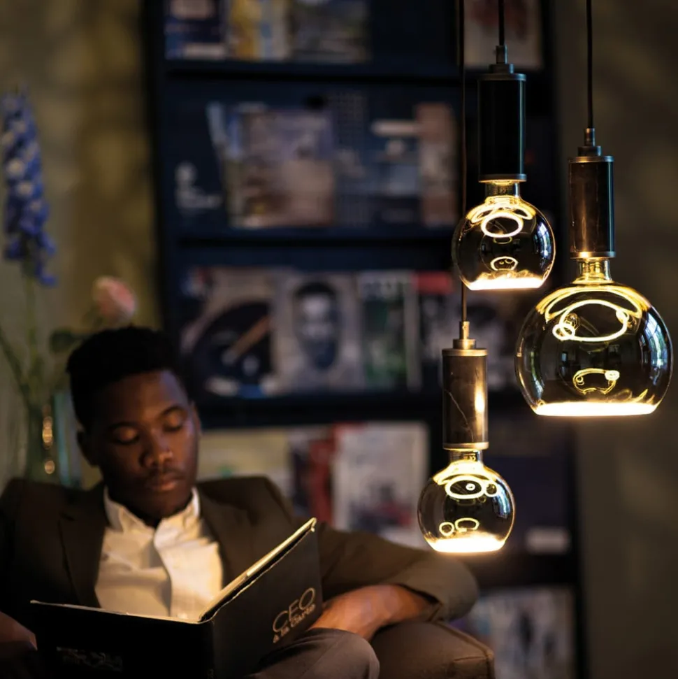 Heldere LED zwevende gloeilamp G150 E27, 4,5W, dimbaarDankzij haar decoratieve uitstraling is de LED zwevende gloeilamp ideaal voor gebruik in open vormgegeven lamphouders of armaturen zonder kap. De LED lamp is aan de bovenkant open en is daardoor in in- of uitgeschakelde toestand een mooie blikvanger in de woonruimte. Het warme licht zorgt ondertussen voor een gezellige sfeer en kan met een geschikte fasedimmer worden gedimd- warme lichtkleur met 2.200 K- dimbaar met ELTAKO, Jung, GIRA- zeer goede kleurweergave Ra 90- bekroond met de Plus X Award 2022/2023 in de categorieën Innovatie, Hoge Kwaliteit en Design.