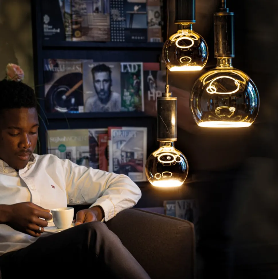 Dimbare LED Floating Globe Lamp G200, E27, 5W, helderDe LED Floating Globe Lamp is alleen al door zijn aanzienlijke afmetingen een mooie blikvanger in de woonruimte. De decoratieve uitstraling wordt versterkt door de opening aan de bovenkant van de lamp. Hij is daarom bijzonder geschikt voor gebruik in open vormgegeven lamphouders of armaturen zonder kap. Het warme licht zorgt voor een aangename sfeer in de woonruimte. Bovendien is het mogelijk om de helderheid van de LED-lamp te regelen met een externe fasedimmer.- Warme lichtkleur met 2.200 K- Dimbaar met ELTAKO, Jung, GIRA- Zeer goede kleurweergave Ra 90- Bekroond met de Plus X Award 2022/2023 in de categorieën Innovatie, Hoge Kwaliteit en Design.