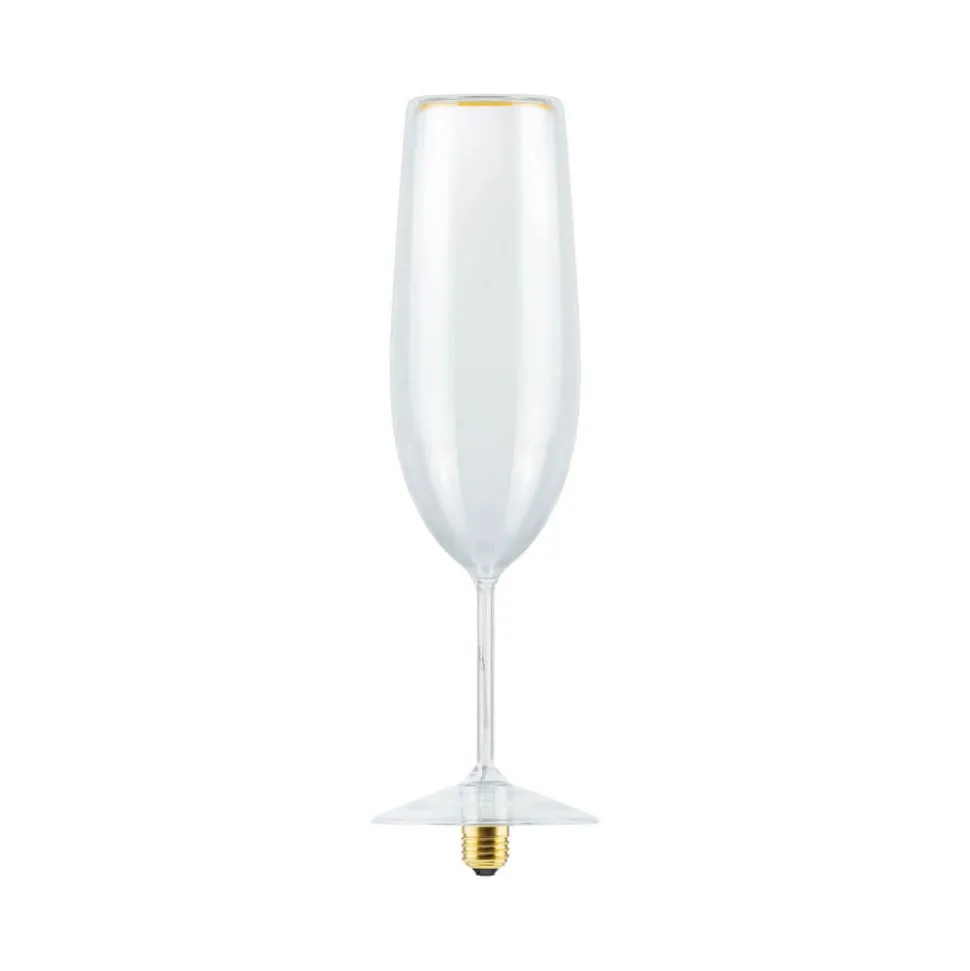 E27 LED lamp Floating Champagne, 4 W – heldere glazen bol Deze E27 LED lamp uit de Floating serie is voorzien van een heldere glazen bol, waarvan de vorm is gemodelleerd naar een champagneglas. De gepatenteerde zachte gloeidraadtechnologie en aantrekkelijke lichtreflecties geven de lamp extra decoratieve waarde. Ideaal voor open armaturen zonder kap of lamphouderarmaturen – extern dimbaar (trailing edge) – extra warmwit licht – goede kleurweergave (CRI 90) – handgemaakte glazen lamp