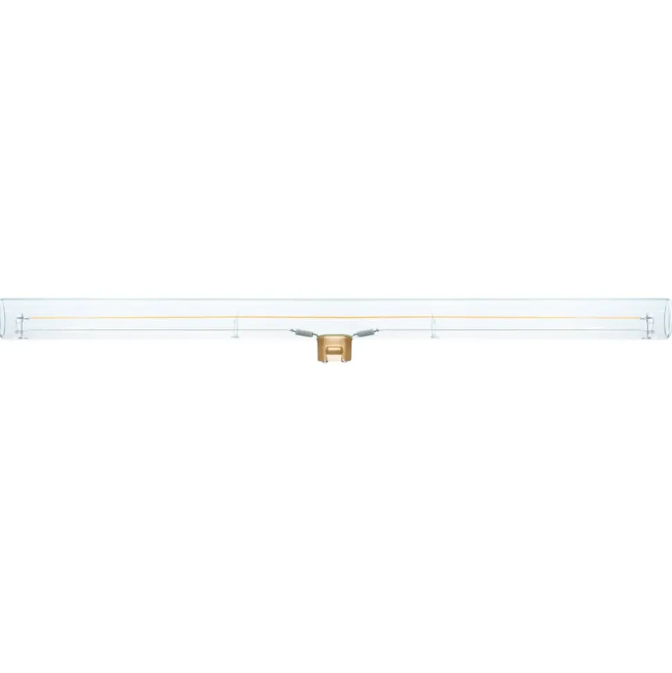 Dimbare S14d LED buislamp 500mm filament met 2.700 K, 6,2 watt Deze LED lamp voor S14d fittingen straalt rondom warmwit licht uit met een goede kleurweergave. Het is ook mogelijk om de lichtsterkte extern te dimmen om de verlichting aan je eigen wensen aan te passen. De gloeidraden zijn zichtbaar door het transparante glas – Vergelijkende waarde: 39 watt – Warmwitte lichtkleur (2.700 K) – Hoge kleurweergave-index (CRI >;90) – Aantal schakelcycli: 100.000 – Extern dimbaar