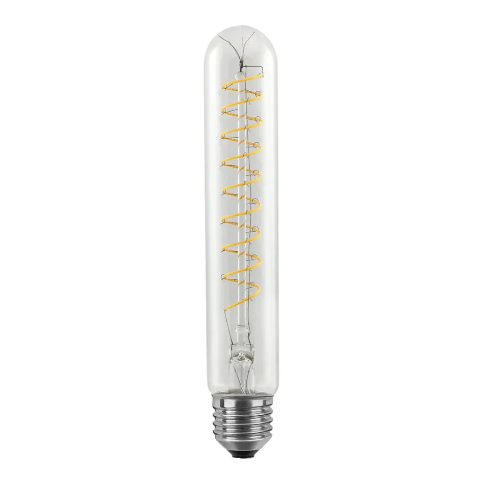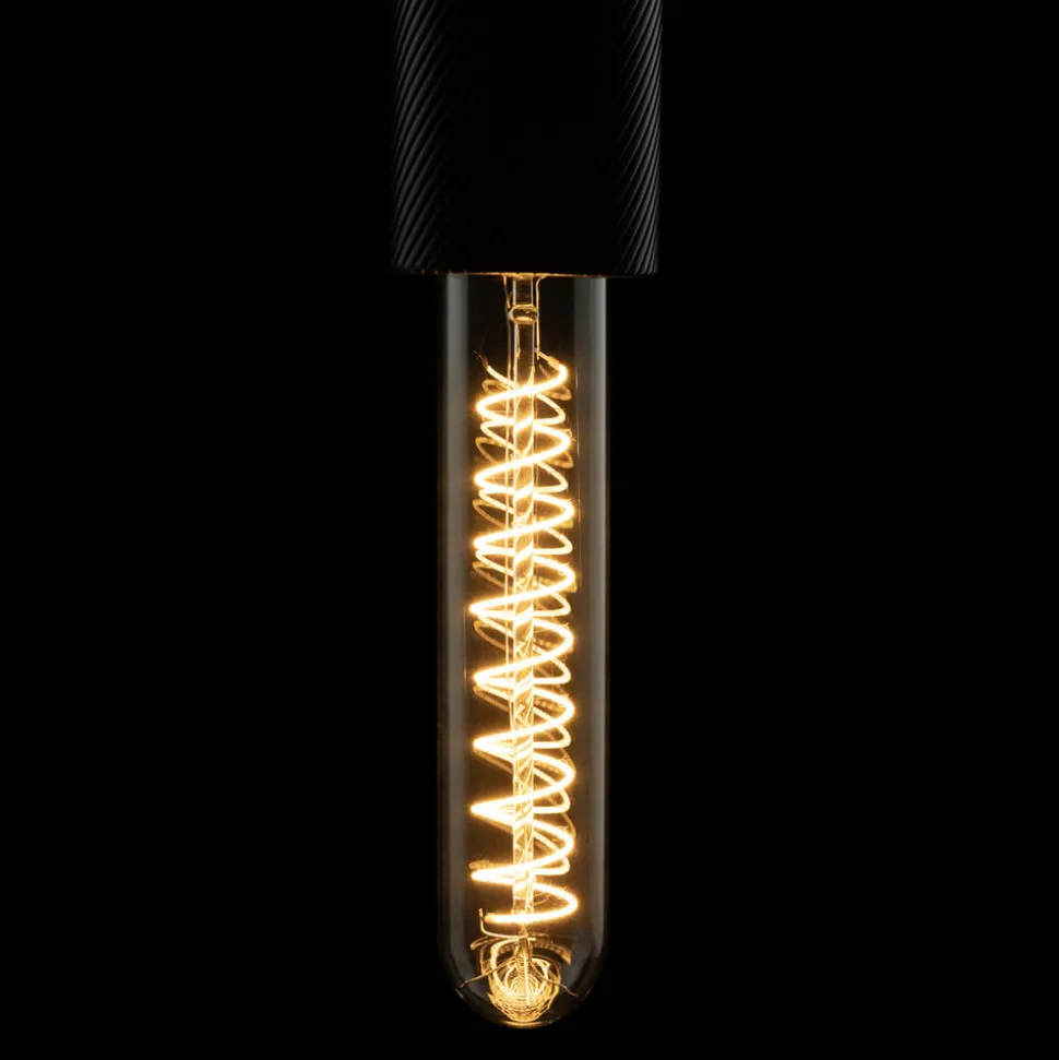 Decoratieve E27 filament buislamp: SEGULA Soft Line LED Tube 200 Spiral, 4,6W, 2.700 K, Ra90 De buisvormige LED lamp Soft Line LED Tube 200 Spiral van SEGULA is gemaakt van glas en toont zijn decoratieve charme met zijn aanzienlijke lengte van 19 cm. De langwerpige, spiraalvormige gloeidraden zijn zichtbaar door het heldere glas, waardoor de lamp ideaal is voor gebruik in decoratieve en designarmaturen. Als efficiënte LED-lichtbron bereikt deze E27 lamp een vergelijkende waarde van 39 watt bij slechts 4,6 watt in vergelijking met conventionele gloeilampen. Hij produceert een aangenaam warm wit licht dat rondom wordt uitgestraald en beschikt over een zeer goede kleurweergave (CRI>90), waardoor deze moderne buislamp ideaal is voor een breed scala aan open vormgegeven armaturen met een decoratief karakter en ook als stijlvolle aanvulling op artistiek vormgegeven designarmaturen – dimbaar