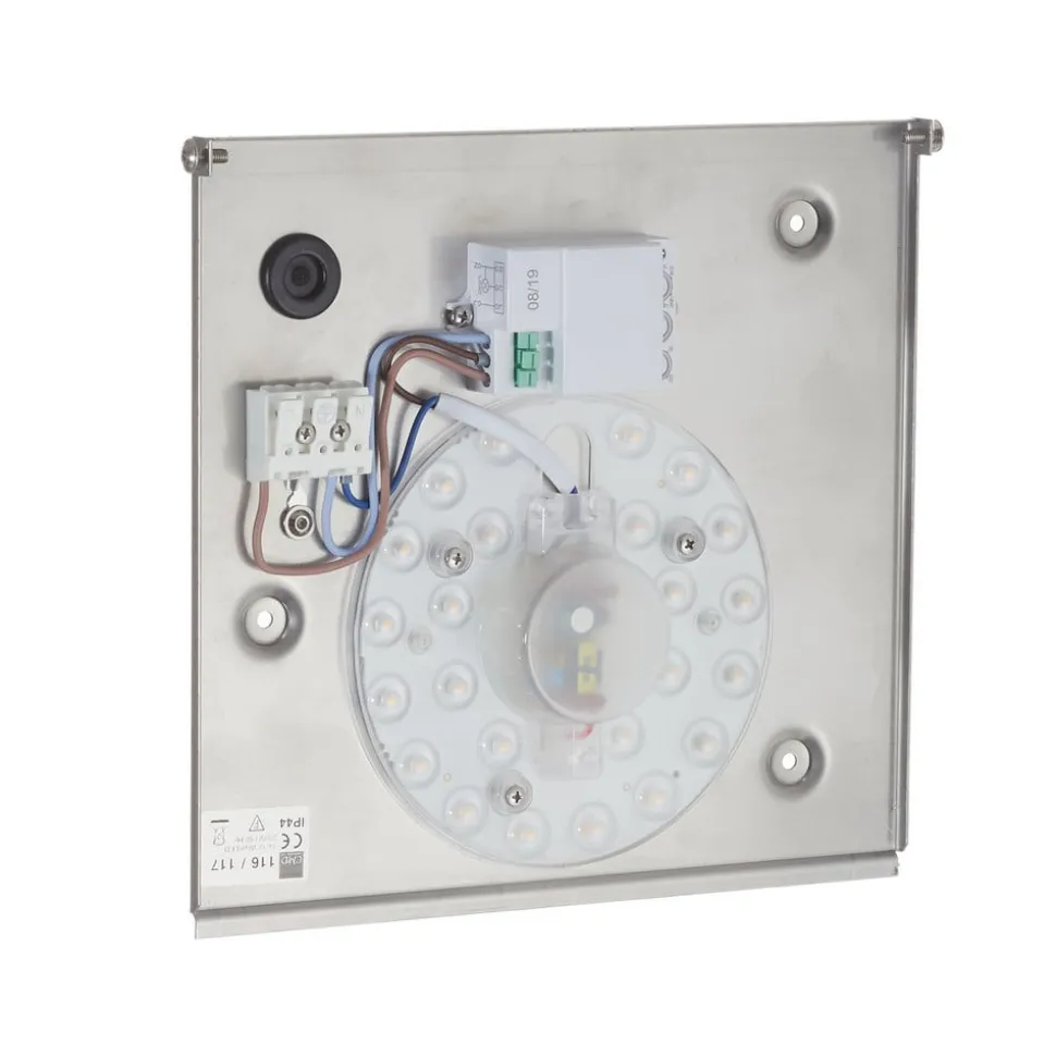De LED buitenwandlamp Aqua Legendo Mini is gemaakt van hoogwaardig roestvrij staal en heeft een vierkante vorm. Daarnaast zijn er diffusors van opaalglas, die verfijnd zijn met een doorschijnende folie, die ervoor zorgt dat de ingebouwde LED’s aan de binnenkant niet zichtbaar zijn aan de buitenkant. Het licht zelf wordt gelijkmatig en zonder verblinding uitgestraald en zorgt zo voor een aangename verlichting. Dankzij de geïntegreerde PIR-sensor schakelt de armatuur altijd het licht aan als er zich een bewegingssignaal in het detectiebereik van de lamp voordoet. Deze functie is ideaal voor veelgebruikte buitenruimtes, zoals bij de ingang van het huis of in de garage.