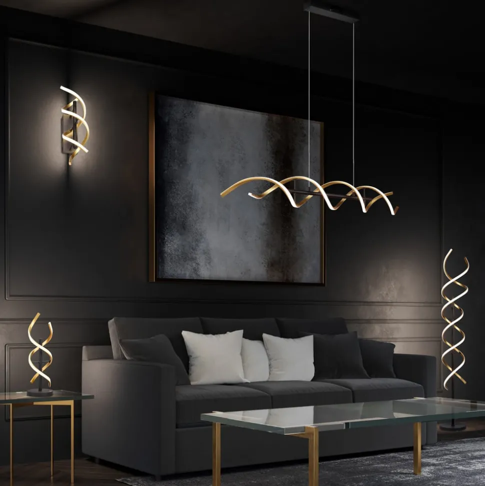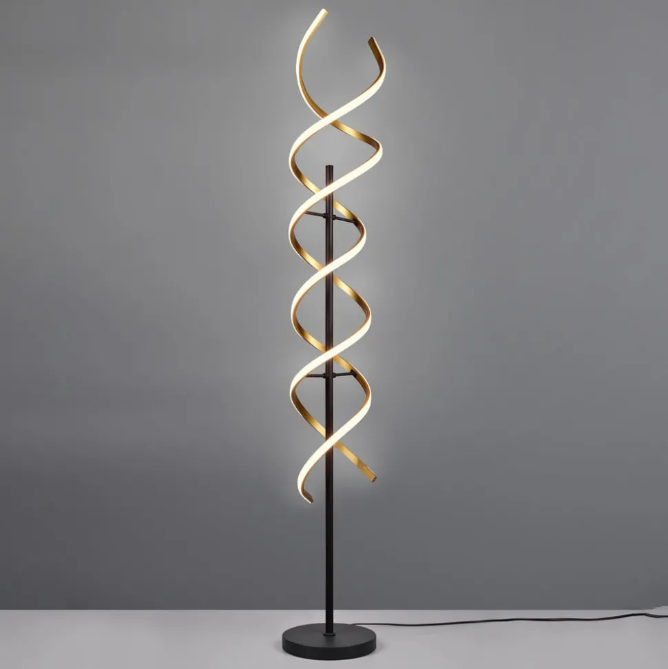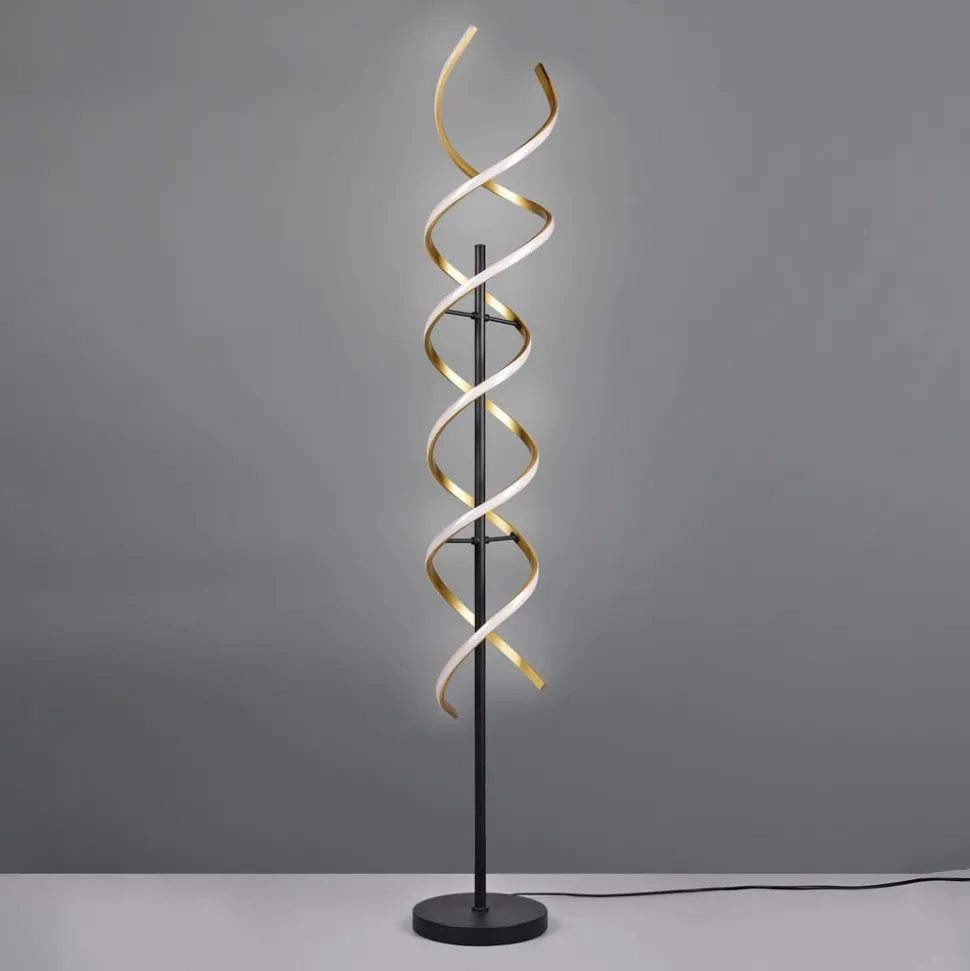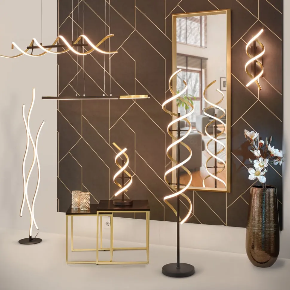 Sequence LED vloerlamp met geïntegreerde dimmer, CCT Die LED vloerlamp van aluminium is ontworpen in de vorm van een spiraal. De lichttemperatuur kan worden ingesteld met een schakelaar aan de bovenkant van het frame. Er is keuze uit twee warmwittinten (2.300 K / 3.000 K) en universeel wit licht (4.000 K). Tegelijkertijd kan de intensiteit traploos worden gedimd met de schakelaar.