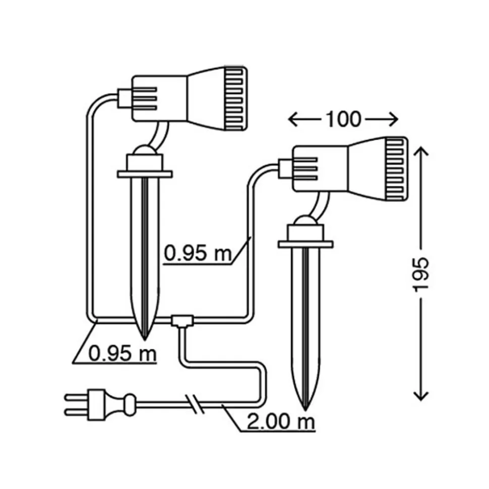 - Afstand tussen de spots 95 cm