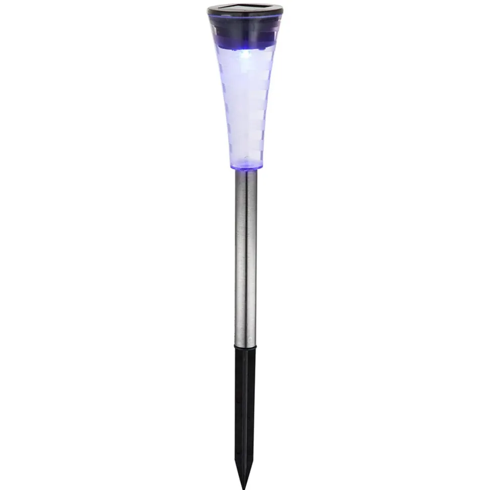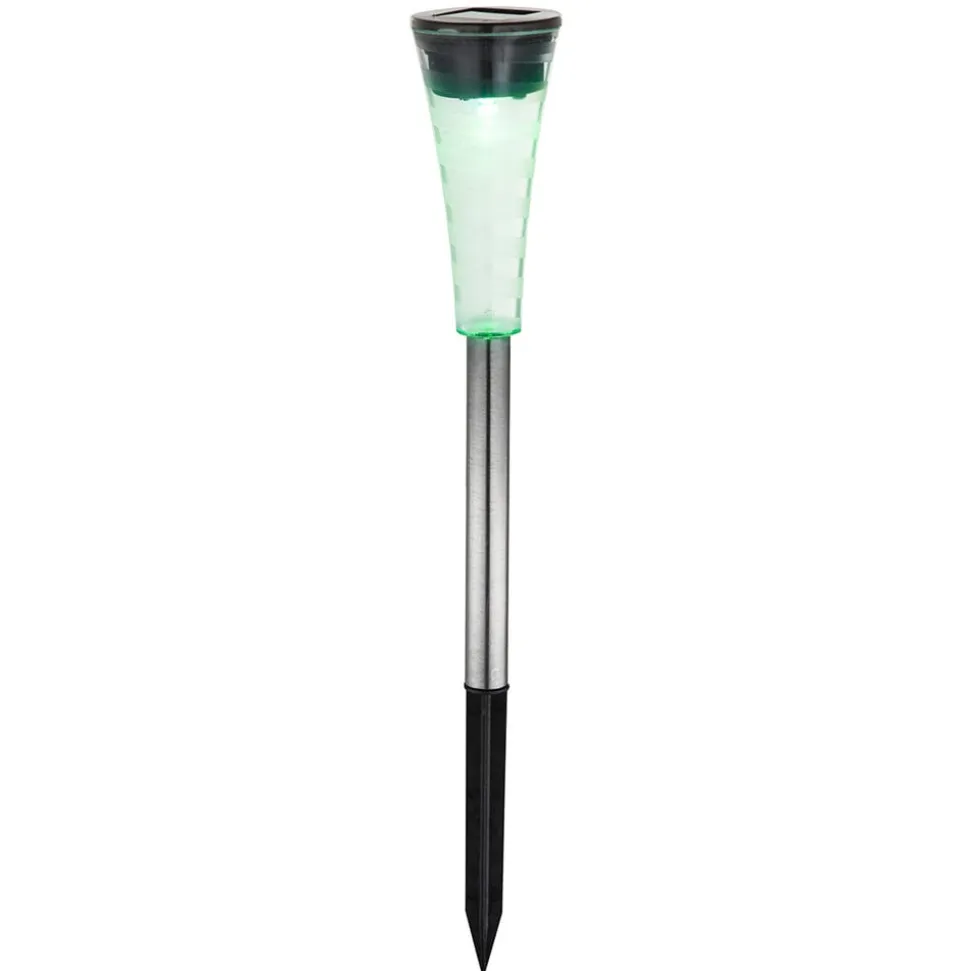Dankzij zijn elegante, conische vorm is deze lamp al een blikvanger. Maar tuinpad verlichting Navin heeft nog een bijzonderheid: de vloeiende kleurverandering van de LED-elementen zorgt voor magische kleurschakeringen en romantische accenten. Dankzij de zonnecel heeft de buitenlamp geen stroomaansluiting nodig. De geïntegreerde accu wordt overdag opgeladen, de lamp schakelt in het donker aan en geeft ongeveer acht uur lang een aangenaam gekleurd licht. Dankzij de grondspies kan deze tuinlamp op vrijwel elke plaats worden geïnstalleerd.