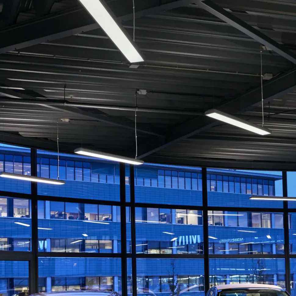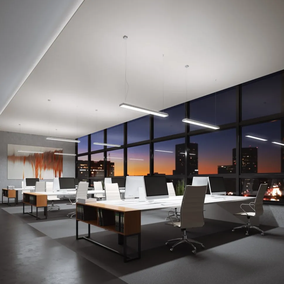 Dimbare LED hanglamp Taris met elektronisch voorschakelapparaat Dali Dankzij de primaire verblindingsbescherming met behulp van een microlamellen bereikt de LED hanglamp Taris verblindingsvrij licht met een verblindingsbeperkingsindex van UGR 19 en is daarmee perfect voor gebruik in kantoren met computerwerkplekken. Die pendelarmatuur is gemaakt van kunststof, waarbij de primaire fotometrische afdekking bestaat uit een axiale lens van PMMA met een gestructureerd oppervlak. Het universeel witte licht van de LED’s wordt symmetrisch uitgestraald, zowel naar boven voor indirecte, algemene ruimteverlichting als naar beneden, waar het bijvoorbeeld direct het bureau verlicht. Dit zorgt voor een zeer aangename verlichting op kantoor of in veel andere ruimtes met computerwerkplekken. Uitgerust met een dimbaar elektronisch voorschakelapparaat kan het armatuur ook worden gedimd via Dali (niet inbegrepen). De montageset voor de afhanghoogte van het armatuur wordt niet meegeleverd – deze moet apart worden besteld – Aansluiting: terminal 5-pins – met gestructureerde axiale lens en microlamellen – symmetrische brede spot met UGR 19 in de kijkrichting langs en over het armatuur – gemiddelde levensduur 50.000 h L80B50 bij UT = 25 °C