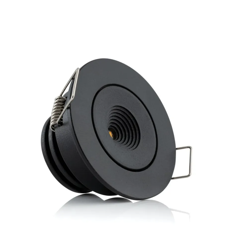 KLEINER plafondinbouwlamp, draaibaar Das MiniOne ronde LED inbouwlamp is een onopvallende keuze voor algemene verlichting in moderne interieurs. Die inbouwlamp kan worden gebruikt in zowel privé- als openbare interieurs en is dankzij de spatwaterbescherming (IP44) ook geschikt voor vochtige omgevingen zoals badkamers en wellnessruimten. Dankzij de compacte afmetingen kan MiniOne in kleine inbouwopeningen worden geïnstalleerd. Als meerdere units samen moeten worden gebruikt, kan de afstand tussen de units worden aangepast aan de omstandigheden in de ruimte dankzij de 3 m lange aansluitkabel. De levering bevat geen voorschakelapparaat; afhankelijk van het aantal te leveren armaturen kan dit in een geschikte versie worden verkregen via de accessoires. – Zeer goede kleurweergave (Cri Cri > 90) – Stralingshoek 120° – Rondom 40° draaibaar – Levensduur L90B10 50.000 uur – Eenvoudige aansluiting dankzij steekklemmen – Geschikt voor doorvoerbedrading