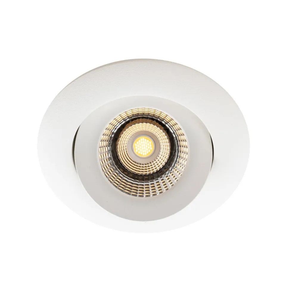 Ronde LED inbouwlamp One 360°, Dime De One 360° plafond inbouwlamp met dimfunctie is bijzonder geschikt voor lounges; met een gereduceerde lichtopbrengst baadt One 360° de ruimte in een bijzonder warm licht. Das downlight met zijn monochrome, ronde ontwerp heeft een absoluut neutrale uitstraling en kan daarom in verschillende openbare en privéomgevingen worden gebruikt. Dankzij de bescherming tegen spatwater (IP44) is de inbouwspot ook geschikt voor vochtige ruimtes (bijv. spa’s) en buiten. One 360° kan rechtstreeks in de isolatie worden geïnstalleerd in ronde inbouwopeningen met verschillende diameters, zodat niet alleen nieuwe gebouwen maar ook renovatieprojecten met de inbouwlamp kunnen worden uitgerust. Die in alle richtingen kan draaien, maakt het mogelijk om de lichtkegel af te stemmen op de omstandigheden – Dime: de lichttemperatuur veranderen van 3.000 K naar 1.800 K terwijl de lichtopbrengst vermindert – Dime: de lichttemperatuur veranderen van 3.000 K naar 1.800 K terwijl de lichtopbrengst vermindert.800 K terwijl de lichtopbrengst vermindert – met uitbreidingsring – installeerbaar in plafondopeningen met Ø 6,8 tot 8,3 cm – zeer goede kleurweergave (Cri Cri > 90) – stralingshoek 36° – rondom 30° zwenkbaar – levensduur L80B10 50.000 uur – inclusief voorschakelapparaat (dimbaar via naloop) – eenvoudige installatie dankzij snelconnector – geschikt voor doorvoerbedrading