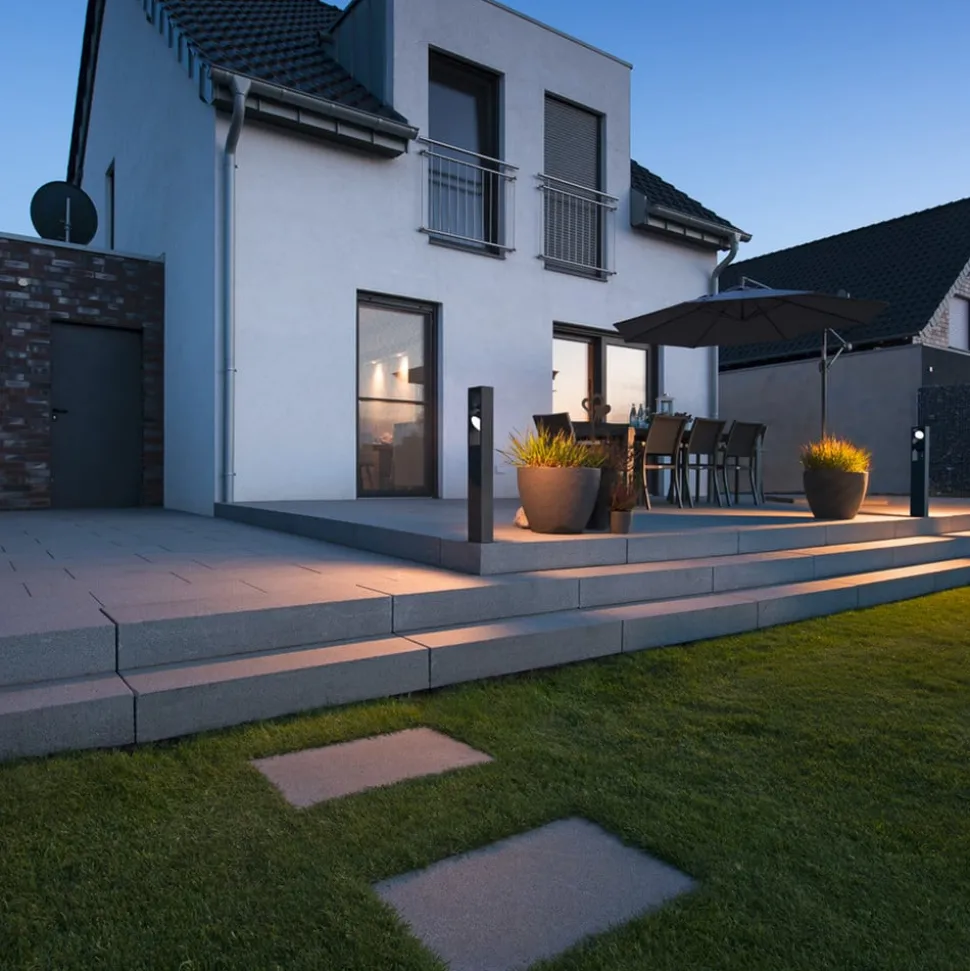 Antracietkleurige Eskina Frame 75 LED tuinpadverlichting – 2-lamps De Eskina Frame LED tuinpadverlichting maakt indruk met haar veelzijdige, succesvolle ontwerp. De populaire buitenlampen uit de Eskina-serie bieden nu nog meer toepassingsmogelijkheden in het designalternatief Frame. De antracietkleurige Eskina Frame slaat een stijlvol figuur in elke buitenruimte. De draaibare lampenkoppen zorgen voor een flexibel instelbare lichtemissie. Dankzij beschermingsgraad IP65 is de Eskina Frame 75 LED tuinpadverlichting optimaal beschermd tegen weer en wind. Bovendien kan de lichttemperatuur en daarmee de lichtkleur flexibel worden gewijzigd vóór installatie met behulp van de CCT-schakelaar die in het armatuur is ingebouwd. Eskina Frame wordt geleverd met losse kabels; voor gebruik is een aansluitdoos nodig.