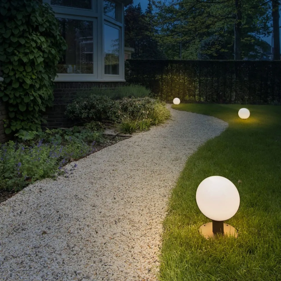 Tijdloos mooie Gloo Pure sokkellamp Deze kleine sokkellamp met een laag frame van antracietkleurig gelakt aluminium maakt indruk met zijn bolvormige, gesatineerde kap, die zorgt voor sfeerverlichting die in alle richtingen schijnt. Dit betekent dat de randen van bloembedden, muren en trappen geen gevaarlijke struikelpartijen worden in het donker. Een esthetisch armatuur dat ook overdag de woning siert.