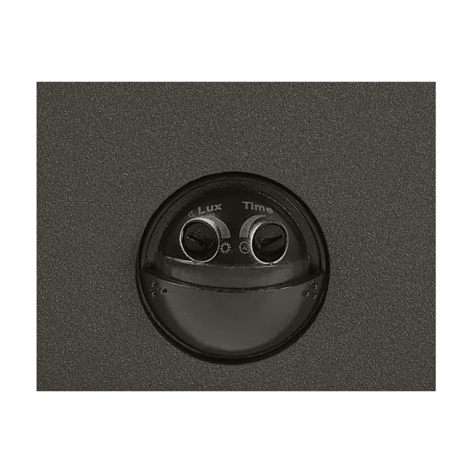 Compacte Grafit buitenwandlamp met bewegingsmelder en daglichtsensor Das kubusvormige design en de ingetogen antracietkleur maken van de Grafit wandlamp de ideale keuze voor moderne omgevingen. Langs de gevel of naast de ingang zorgt de opalen acryl diffuser die bovenaan is gemonteerd voor een homogene verlichting aan alle kanten. De behuizing en muurbeugel zijn gemaakt van robuust aluminium en worden automatisch geschakeld met bewegings- en daglichtsensoren – praktisch en energiebesparend – Bewegingssensor: detectiehoek 120°, max. bereik 10 m – Inschakelduur voor bewegingsdetectie: instelbaar van 8 S tot 8 Min – Schemeringsdrempel: instelbaar van 10 lx tot 2.000 lx – Beschermingsgraad: IP44 – Omgevingstemperatuur tijdens gebruik: – 20 °C tot + 45 °C