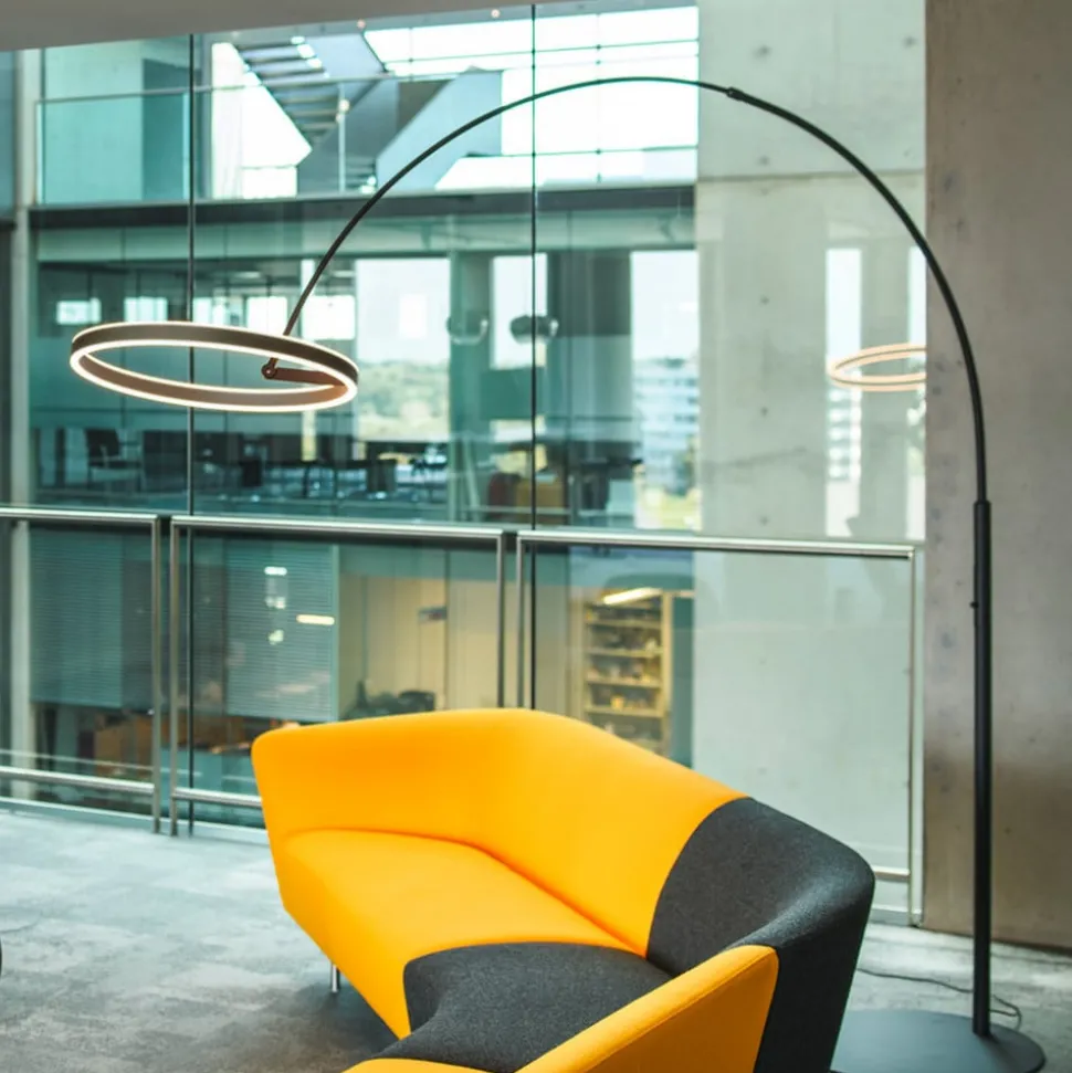LED vloerlamp One Bow FL Ideaal voor hotels, restaurants en kleinere winkels: De LED vloerlamp One Bow FL slaat een vakkundige brug tussen een rondom geslaagd design en hoogwaardig licht. De ronde lampenkop straalt zijn lichttemperatuur naar boven en beneden aan te passen en dimbaar licht uit. Dankzij de kleurweergave-index van CRI 90 worden kleuren natuurlijk weergegeven – Geïntegreerde dimmer – Stralingshoek 140° – Verticaal draaibereik: 120° – Horizontaal 60° draaibaar
