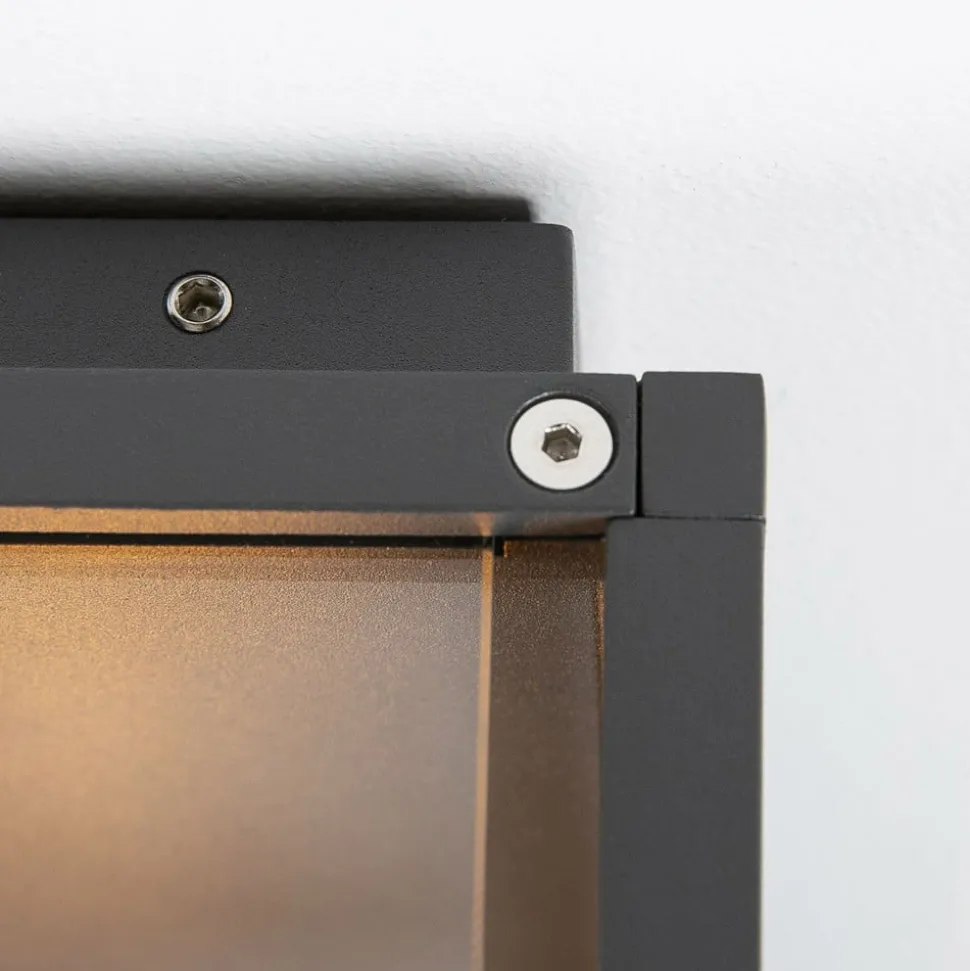 Moderne buitenwandlamp Quadrulo in lantaarnvorm met bewegingsmelder Het ontwerp van de Quadrulo buitenwandlamp doet denken aan een klassieke lantaarn van vroeger, maar deze is volledig herzien en gecombineerd met moderne vormen en een eigentijds kleurenschema. In de glazen kap zit een E27 fitting waarin een vintage lamp kan worden gestoken (zie accessoires). Dit geeft de totale look extra retro charme. Een bijzonder HighLight is de geïntegreerde bewegingsmelder, die het licht automatisch in- en uitschakelt wanneer een persoon zich binnen het detectiebereik bevindt. Detectiebereik bij een montagehoogte van 1,8-2,5 m: max. 8 m. Detectiehoek: 100°