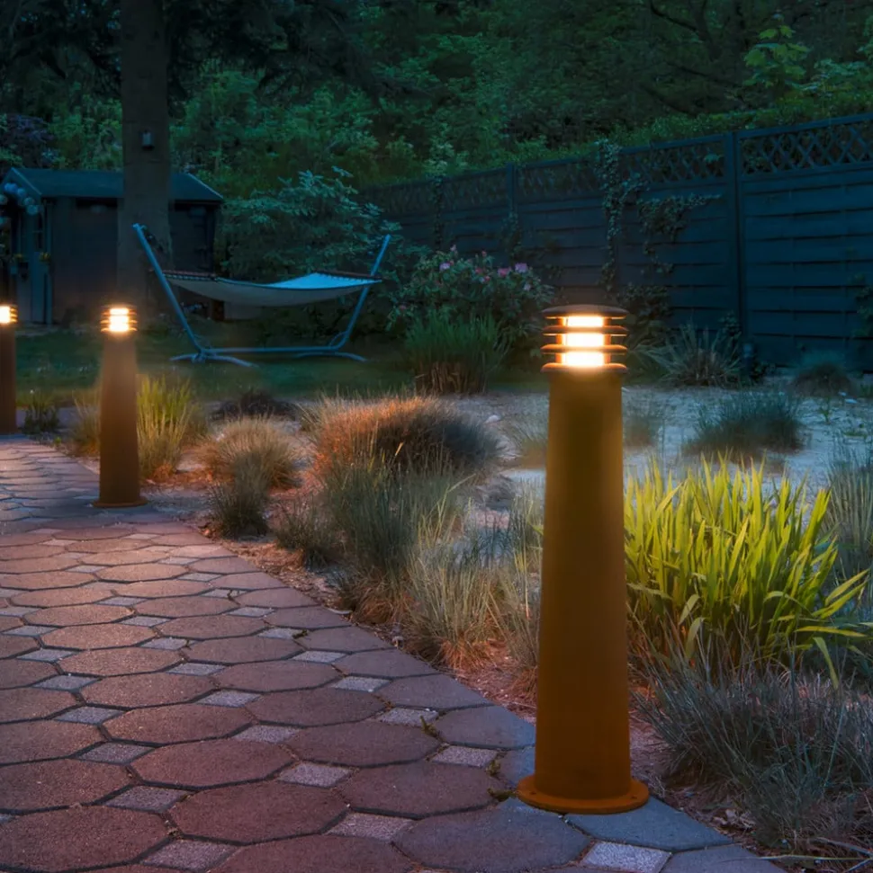 Rusty tuinpadverlichting van FeCSi-staal De Rusty 70 tuinpadverlichting met directe lichtverdeling maakt indruk met haar ongewone roestige uiterlijk. Het gebruikte FeCSi-staal vormt door de weersomstandigheden een gecontroleerde roestlaag op het oppervlak, die de eigenlijke stof beschermt tegen verdere corrosie. Dit maakt de lampen uniek en een absolute specialiteit voor elke installatie. Uitgerust met beschermingsgraad IP55. Met open kabeleinde. Een aansluitdoos is vereist. Een aardingspin en een aansluitdoos kunnen worden aangeschaft via de accessoires.