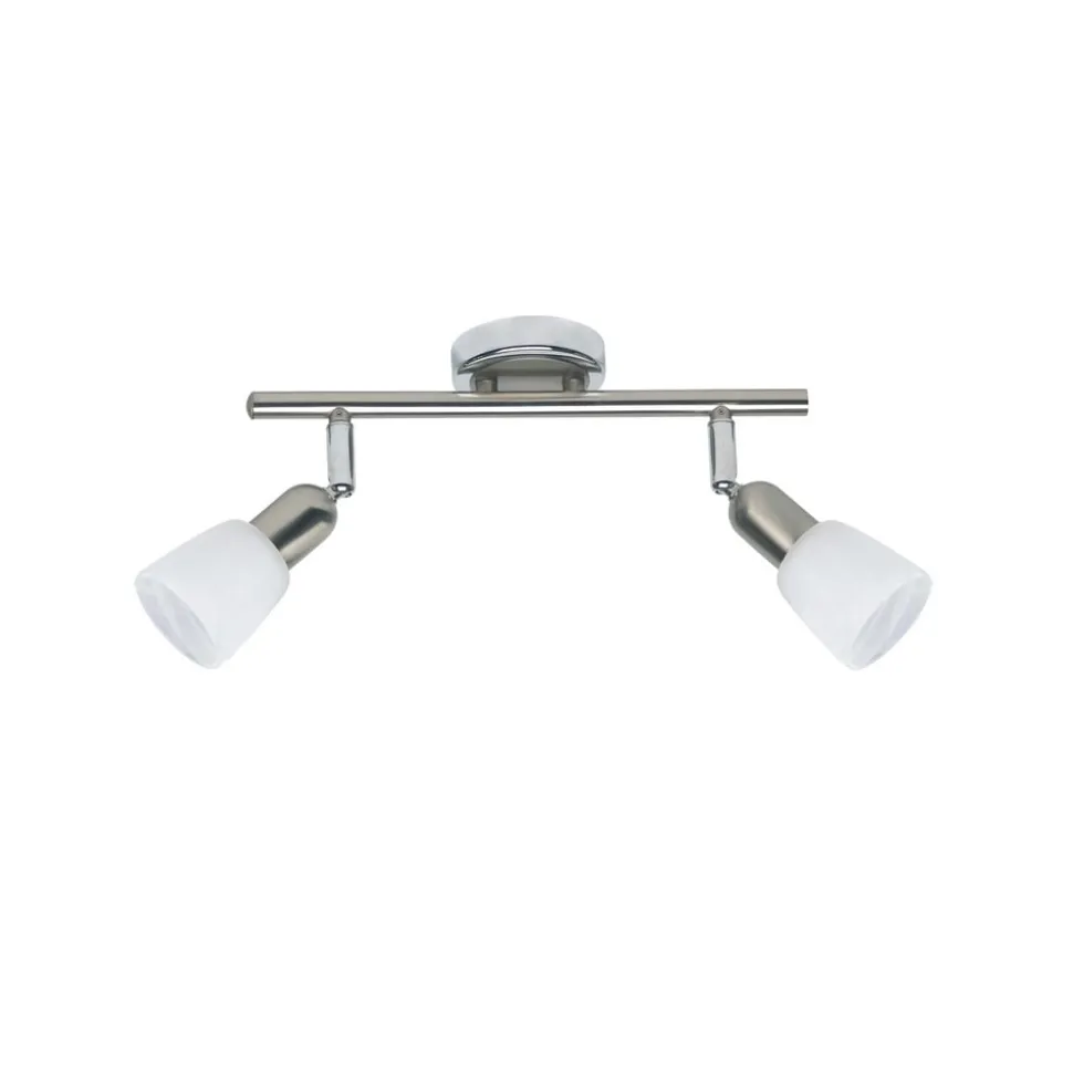 Sofia plafondspot, ijzer/chroom/wit, lengte 33 cm, 2-lamps.