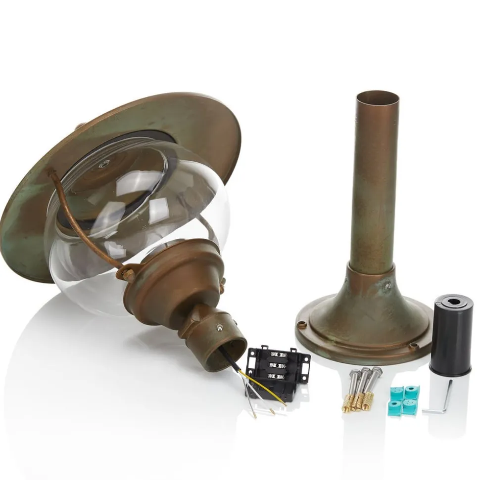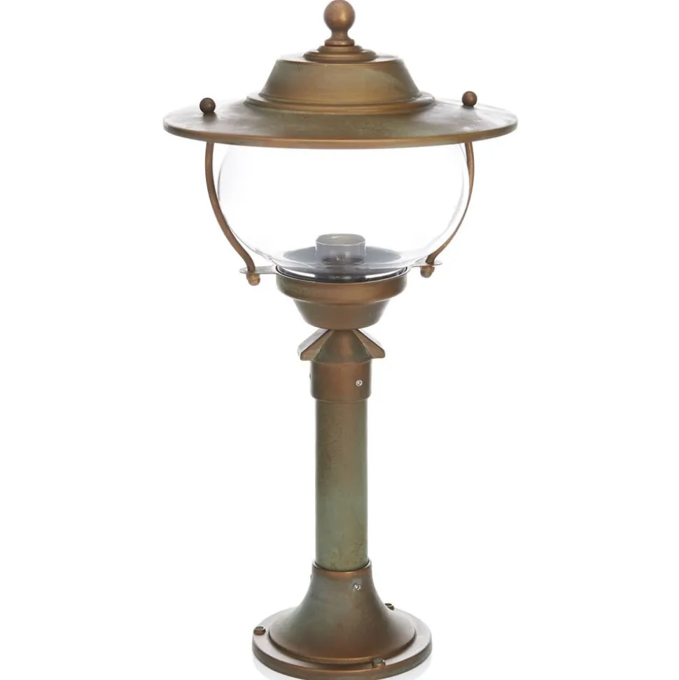 De Adessora sokkellamp zorgt voor stijlvolle verlichting van eigendommen Deze prachtige sokkellamp met bolvormig, helder kapje, dat helder licht uitstraalt over een groot oppervlak, is precies wat je nodig hebt voor eigendommen met een antiek of rustiek ontwerp dat benadrukt moet worden. Ze kan worden gebruikt om randen zoals borders, muren of trappen veilig te verlichten. Het antieke messing frame heeft ook een boeiende uitstraling en is bovendien voorzien van corrosiebescherming tegen schade door zeewater. Dit maakt Adessora ook geschikt voor woningen in kustgebieden.