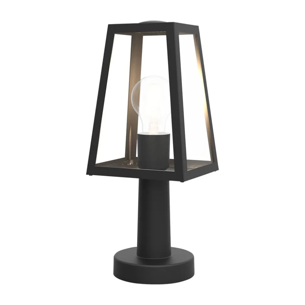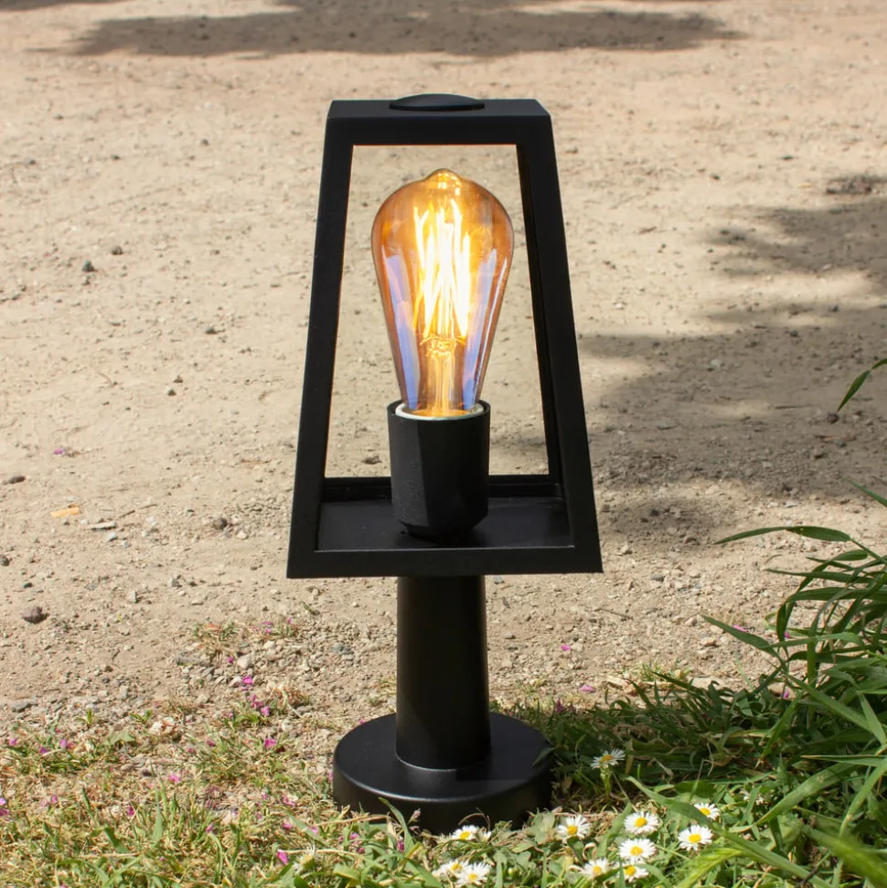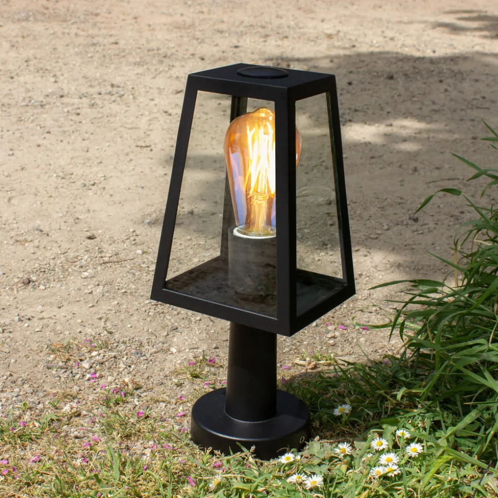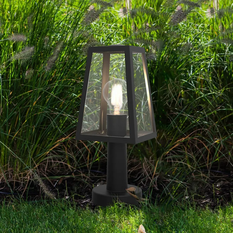 1-lamp Fia sokkellamp in een tijdloze lantaarnvorm De Fia sokkellamp slaat een goed figuur in elke buitenruimte dankzij het klassieke en toch eigentijdse ontwerp en het heldere glas. Hij is gemaakt van gegoten aluminium en transparant glas en ziet er bijzonder mooi uit met een filament lamp.