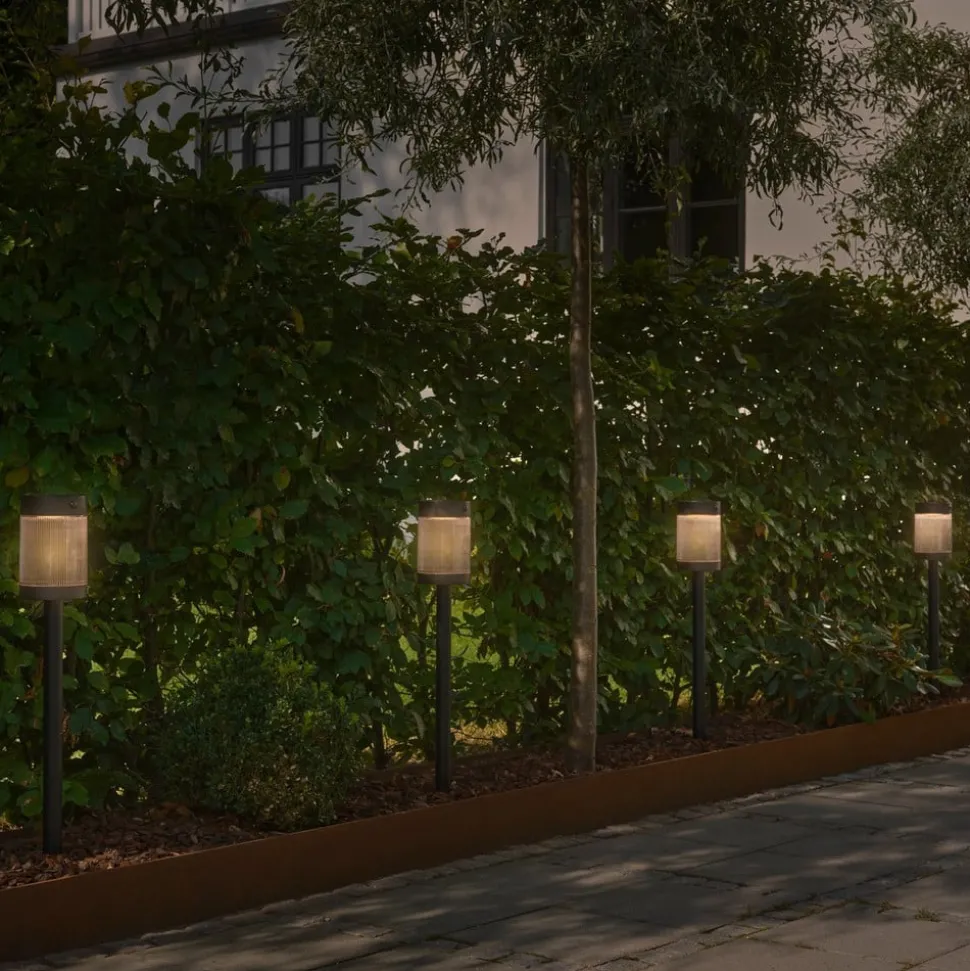 De op zonne-energie werkende LED tuinpadverlichting Coupar van het Deense ontwerpersduo Says Who is een moderne interpretatie van een traditionele lantaarn. De serie heeft strakke lijnen en tegelijkertijd een zacht, afgerond design en brengt klassieke details op harmonieuze wijze in balans met een moderne, eigentijdse look. De lamp wordt overdag opgeladen door zonlicht en gaat ’s nachts aan wanneer de bewegingsmelder beweging detecteert. Er zijn twee sensorinstellingen beschikbaar: aan/dimbaar (van nachtlampje naar vol licht bij bewegingsdetectie) of aan/uit. De tuinpadverlichting is eenvoudig te installeren dankzij de meegeleverde Nordlux-grondpen.