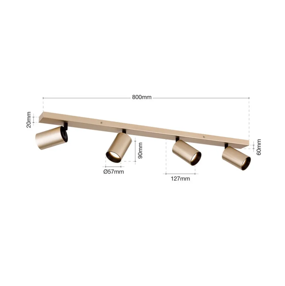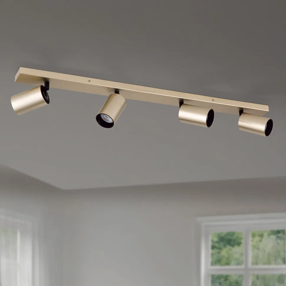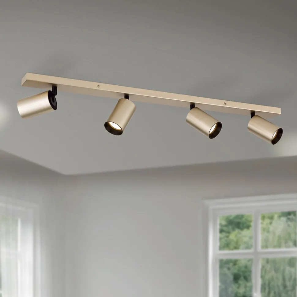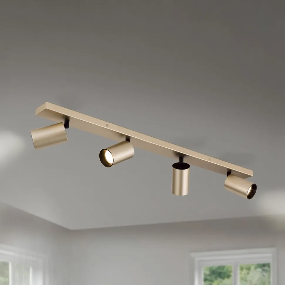 Spot Sean, 4-lamps, goudkleurig, metaal, draaibaar gemonteerd