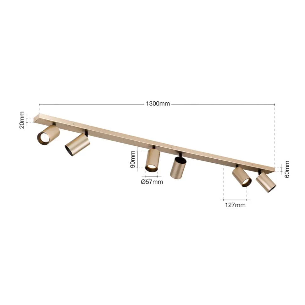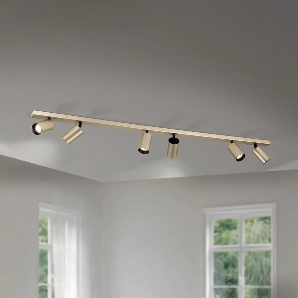 Spot Sean, 6-lamps, goudkleurig, metaal, draaibaar