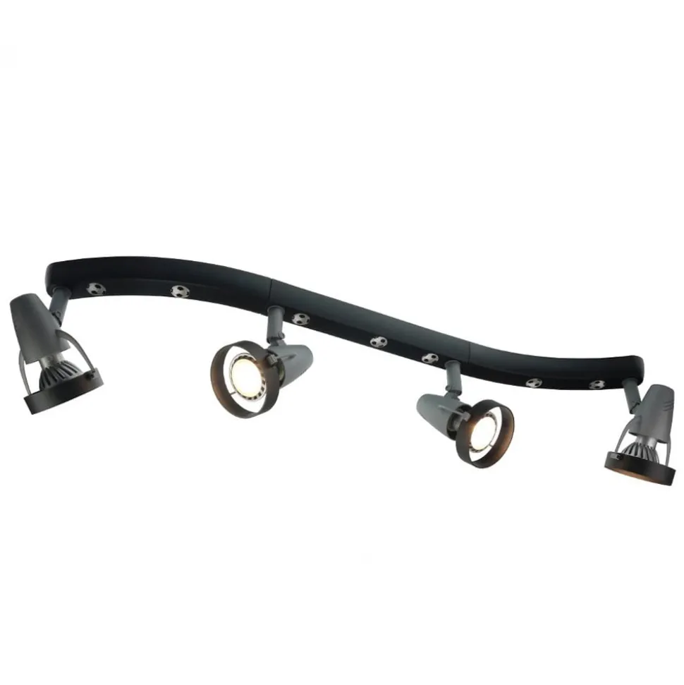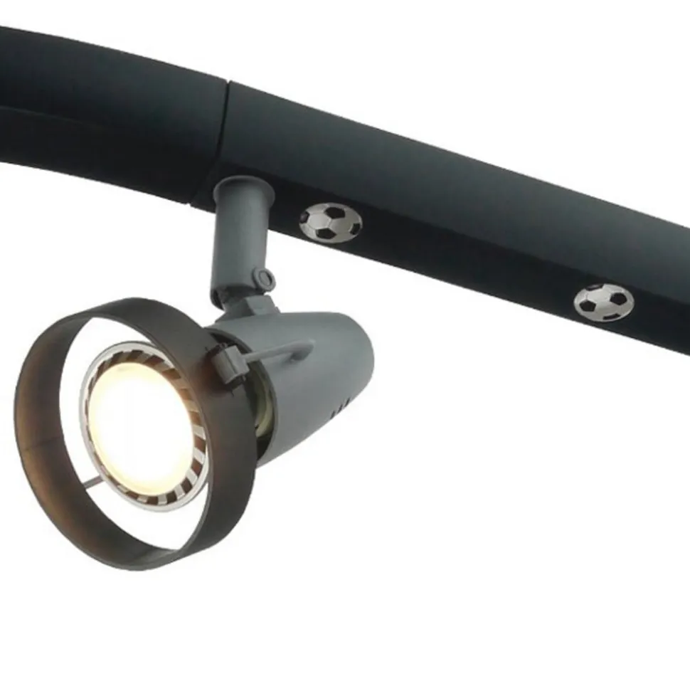 De spotkader Voetbal doet het hart van alle voetbalfans sneller slaan. Het kader zelf is met meerdere voetballen versierd. De vier spots die met GU10-lichtbronnen uitgerust worden en via scharnieren in alle richtingen versteld kunnen worden, zorgen voor licht. Het spotkader Voetbal is een leuke algemene verlichting voor de kamer van voetbalfans.