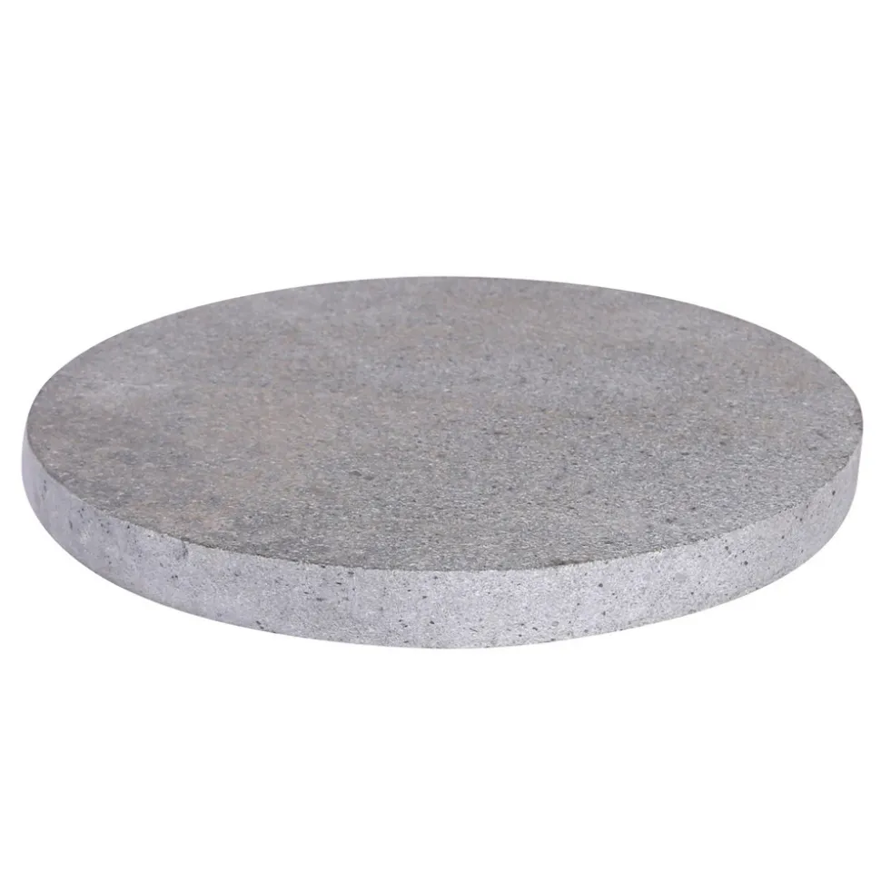 De ronde stenen voet is gemaakt van lavasteen en kan worden gebruikt om de staande lamp Tecka van Les Jardin te stabiliseren