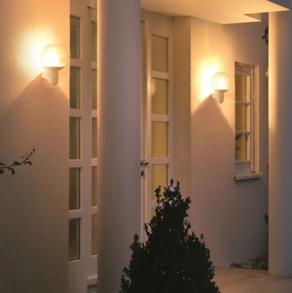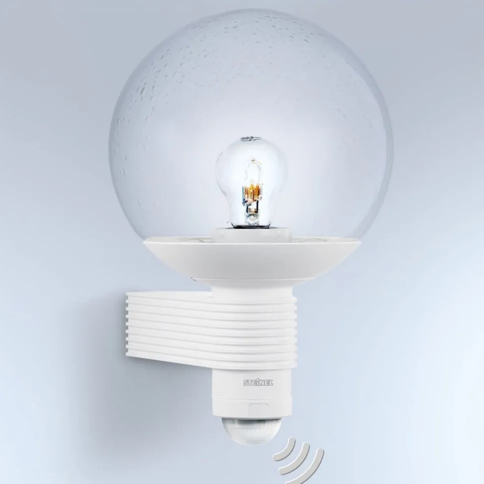 L 400 S: Sensor buitenwandarmatuur met bolvormige kap van kristalglasDe buitenwandarmatuur L 400 S met bewegingsmelder straalt rondom fascinerend licht uit, straalt ook onverlicht moderniteit en stijl uit en past bij veel geveldesigns. Bovendien straalt de buitenarmatuur met een ongeëvenaarde functionaliteit. Niets ontsnapt aan de 240° bewegingssensor. Het detectiebereik loopt van één tot twaalf meter, wat door middel van een afdekking kan worden teruggebracht tot 1 meter. De meegeleverde afdekking kan op maat worden geknipt. De tijdsinstelling kan worden gevarieerd van 10 seconden tot 15 minuten. Bij het aanpassen van de helderheid ligt het instelbereik tussen 0% en 50%. Het handgeblazen kristalglas creëert een bijzonder effectieve lichtsfeer. Het frame is gemaakt van weerbestendig kunststof in een robuust ontwerp. Met IP44-bescherming is de armatuur ook bestand tegen zwaardere weersomstandigheden. – 180° openingshoek- Sensorsysteem: 5 detectieniveaus met 276 schakelzones- Schemerinstelling: 2 – 2.000 lux- Montagehoogte max. 6 m