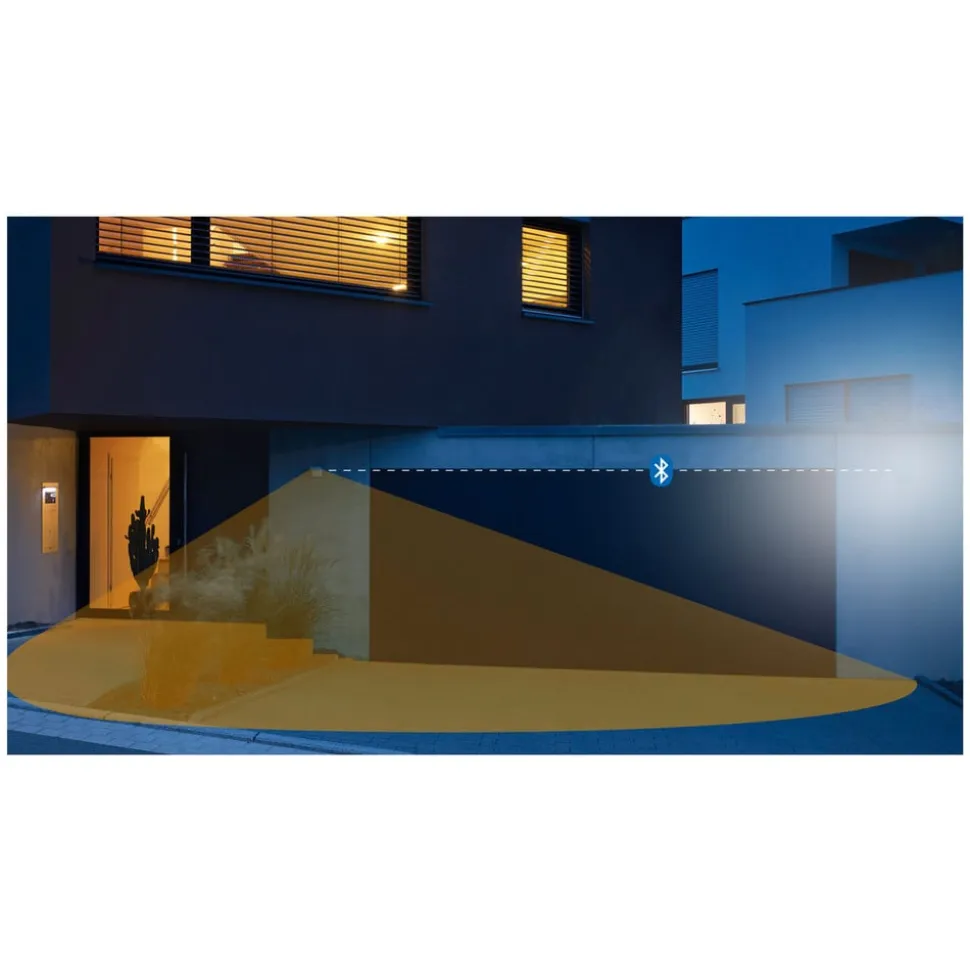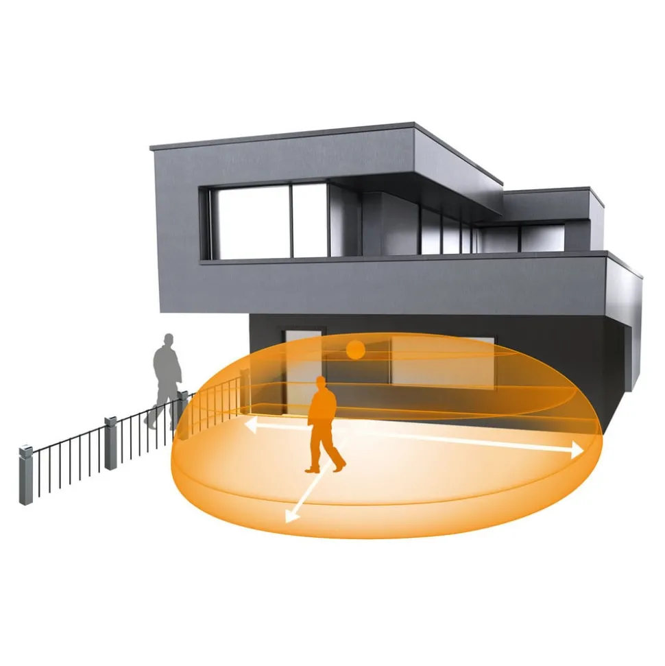 Deze bewegingsmelder is geschikt voor opbouwmontage en wordt ideaal geïnstalleerd op een hoogte van 1,8 m tot 2 m. Hij zorgt ervoor dat geen enkele beweging onopgemerkt blijft op gevels, rond terrassen, carports of parkeerplaatsen. Het zorgt ervoor dat geen enkele beweging onopgemerkt blijft op gevels, terrassen, carports of parkeerplaatsen. Het detecteert en onderscheidt objecten, zodat er geen vals alarm is door kleine dieren, kou of warmte. Met een detectiehoek van 160° detecteert hij naadloos alle bewegingen, ongeacht uit welke richting ze komen. Instelbaar per app (Android of iOS) via Bluetooth.