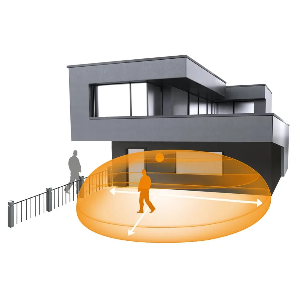 Deze bewegingsmelder is geschikt voor opbouwmontage en wordt ideaal geïnstalleerd op een hoogte van 1,8 m tot 2 m. Hij zorgt ervoor dat geen enkele beweging onopgemerkt blijft op gevels, rond terrassen, carports of parkeerplaatsen. Het zorgt ervoor dat geen enkele beweging onopgemerkt blijft op gevels, terrassen, carports of parkeerplaatsen. Het detecteert en onderscheidt objecten, zodat er geen vals alarm is door kleine dieren, kou of warmte. Met een detectiehoek van 160° detecteert hij naadloos alle bewegingen, ongeacht uit welke richting ze komen. Instelbaar per app (Android of iOS) via Bluetooth.