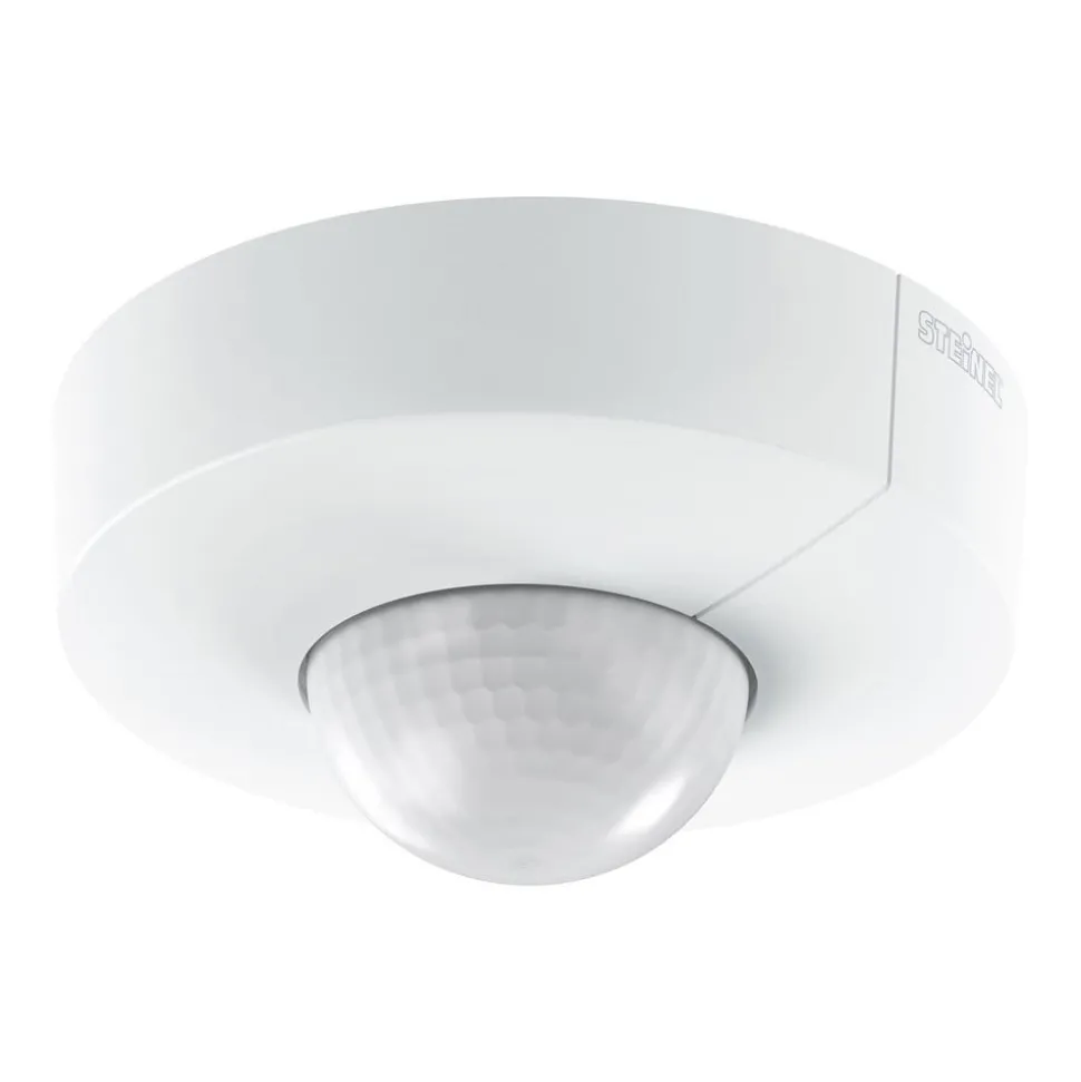 Ronde bewegingsmelder IS 3360 COM1 voor kamers met hoge plafonds De discrete, ronde bewegingsmelder IS 3360 COM1 is ontworpen voor opbouwmontage en is ideaal voor het bewaken van hoge kamers en hallen waarin een groot gebied tegelijkertijd moet worden bewaakt. Hij kan op een hoogte tot 4 meter worden geplaatst en bestrijkt een gebied van 20 meter rondom met zijn nauwkeurige infraroodsensor. Dit resulteert in een bewaakt gebied van meer dan 1.000 m², wat betekent dat het zonder aarzeling kan worden gebruikt in bijvoorbeeld ondergrondse parkeergarages, trappenhuizen, magazijnen of zelfs sporthallen. Dankzij IP54 kan hij ook buiten worden gebruikt en zorgt hij ervoor dat looppaden betrouwbaar en veilig worden verlicht. Technische details: – Montagehoogte 2,50 m – 4,00 m / ideaal 2,80 m – 360° detectiehoek met 180° openingshoek – Bereik: max. 20 m tangentieel – 11 detectieniveaus, 1.416 schakelzones – Schemerinstelling 2 – 1.000 lux met teach-functie – Tijdinstelling 5 s – 15 min. – Continu licht schakelbaar tot 4 h – Vermogen max. 2.000 W – Met kruipbeveiliging