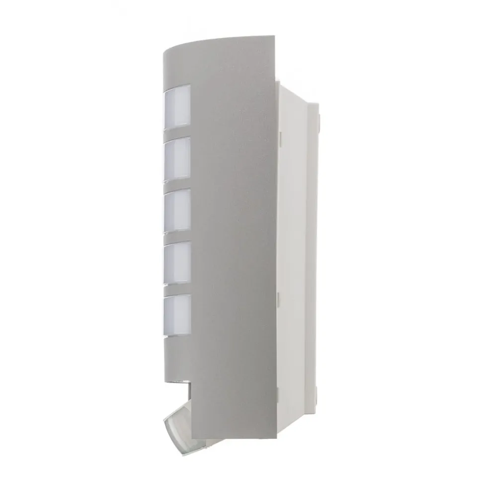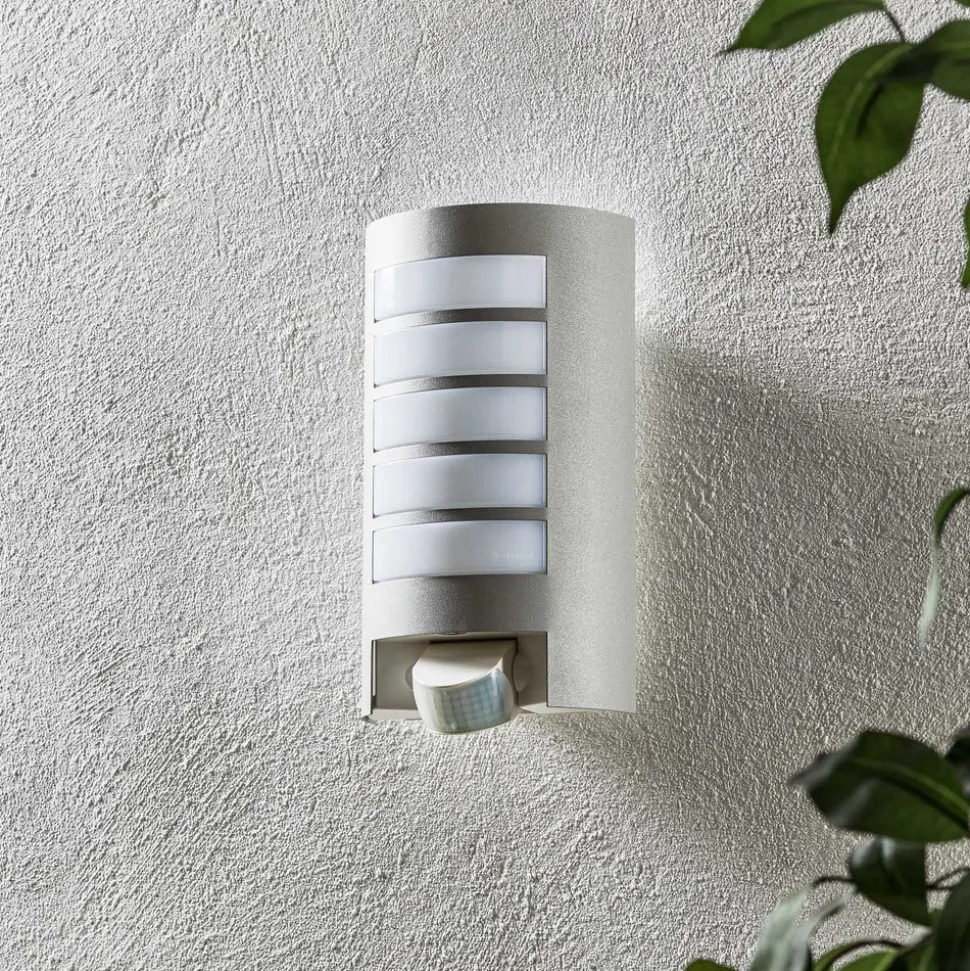 Wandlamp L 12 S met bewegingsmelder voor buiten Moderne, compacte buitenwandlamp met comfort, veiligheid en energie-efficiëntie in “Duitse kwaliteit”. Deze buitenlamp met sensor biedt hoogwaardige aluminium uiteinden, modern design en sensortechnologie die al miljoenen keren is beproefd. Met een maximaal bereik van 10 m bedraagt de detectiehoek 180°. Door het grote draaibereik van de sensor (90°) en de mogelijkheid om afzonderlijke segmenten af te dekken, kan het detectiebereik optimaal worden aangepast aan de omgevingsomstandigheden.