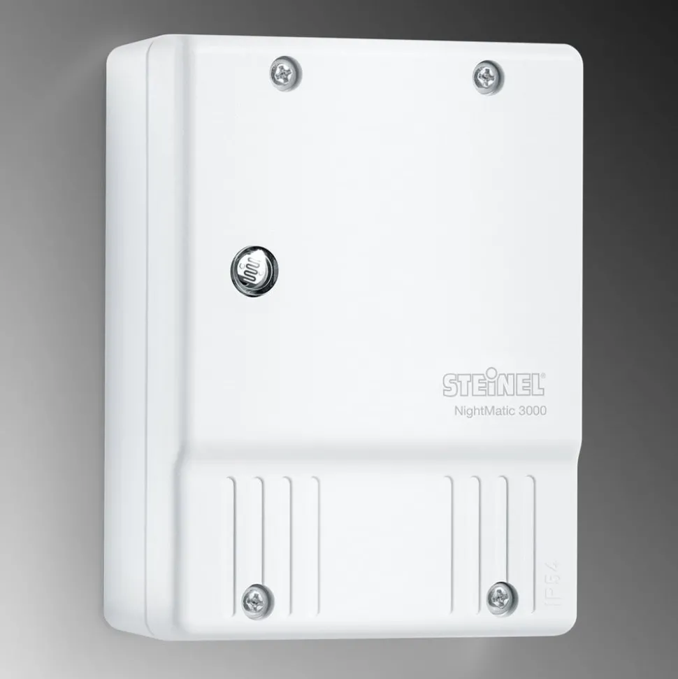 De NightMatic 3000 registreert de omgevingshelderheid en schakelt aangesloten armaturen ’s avonds bij het bereiken van de schemeringsdrempel automatisch in en bij zonsopgang weer uit. Met zijn Vario nachtspaarstand helpt hij ook elektriciteit te besparen. Indien gewenst, schakelt het licht ’s nachts na een programmeerbare tijd automatisch uit en ’s morgens rond 5 uur weer aan – als het dan nog donker is. Hij is uitgerust met zelflichtcompensatie, d.w.z. dat een externe armatuur in de nabijheid de werking ervan niet verstoort.