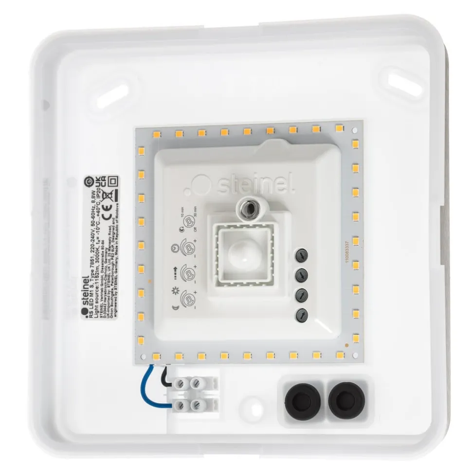 De RS M1 wandarmatuur van Steinel heeft een onopvallend uiterlijk met een witte kunststof afdekking aangevuld met een metalen applicatie en biedt nuttige en betrouwbare functies.