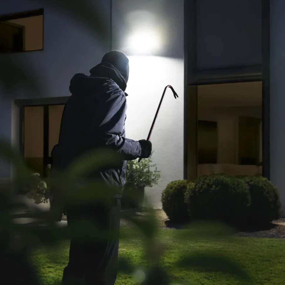 De schijnwerper XLED Cam 1 SC voor buiten laat niets te wensen over. Uitgerust met IP44 bescherming en gemaakt van hoogwaardig aluminium, kan het zonder aarzeling op het huis worden gemonteerd. Het is duidelijk een multitalent, waarbij veiligheid en efficiëntie hoog in het vaandel staan. De ingebouwde infrarood bewegingsdetector met een detectiehoek van 180° en een bereik van 10 meter bestrijkt een groot gebied. Als er een verandering van warmte in dit gebied optreedt, reageert het onmiddellijk en schakelt het licht automatisch aan.