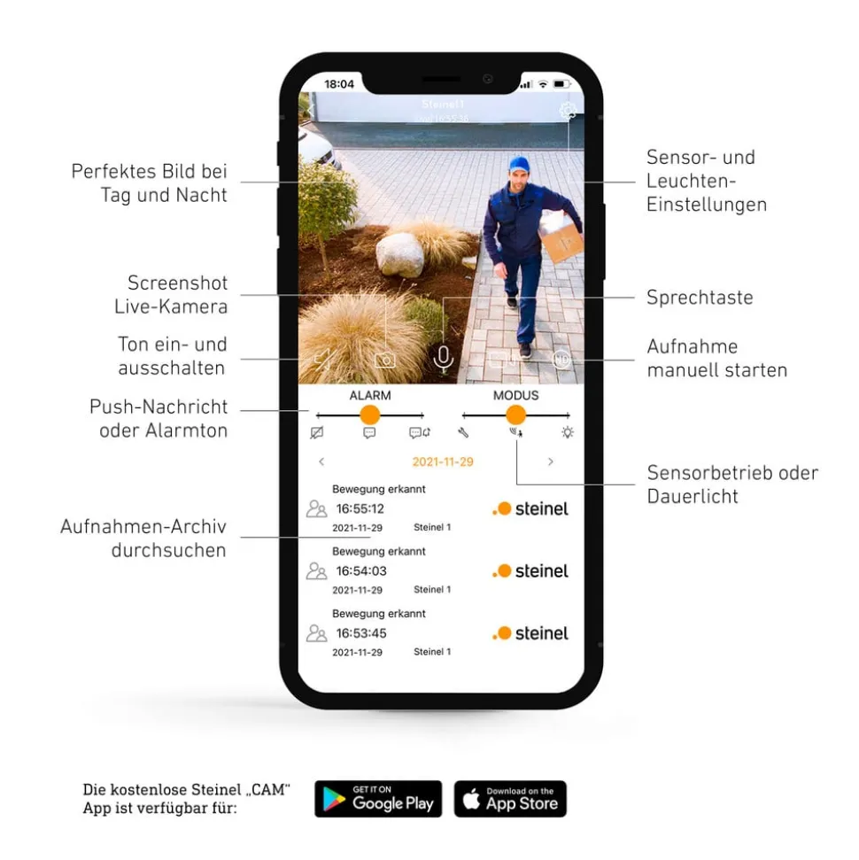 Het grote hoogtepunt is de geïntegreerde HD groothoek kleurencamera. Het levert bewakingsbeelden in uitstekende kwaliteit, die ook onmiddellijk naar het mobiele apparaat kunnen worden overgebracht. Dankzij het praktische handsfree systeem kunt u zelfs rechtstreeks met bezoekers communiceren.