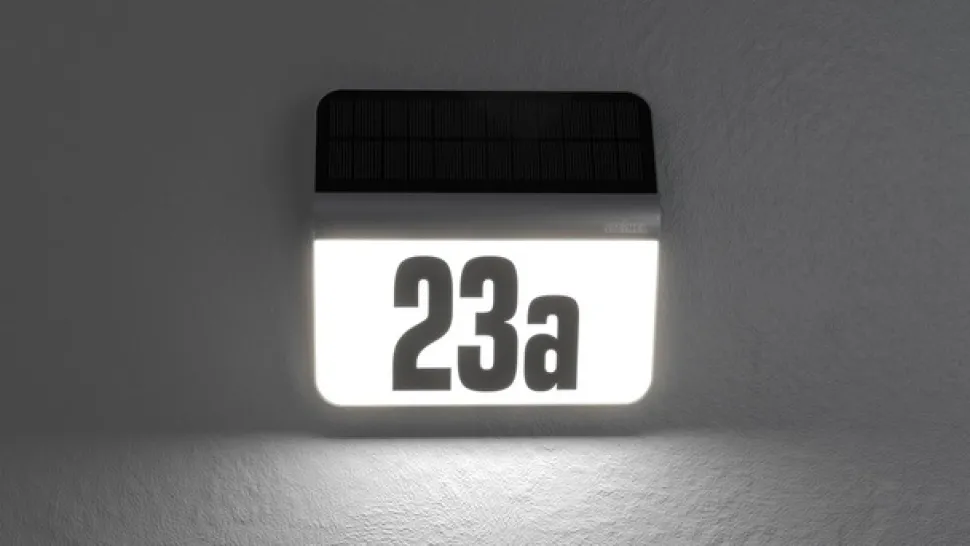 LED-huisnummerverlichting XSolar LH-N van UV-bestendige kunststof met roestvrijstalen omlijsting