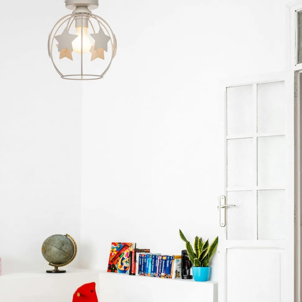 Plafondlamp Stars: Europees vakmanschap voor kinderkamers, woonkamers en slaapkamers Deze in Europa vervaardigde lamp combineert hoogwaardig vakmanschap met een ontwerp dat een sfeervolle ambiance creëert in de woonkamer, kinderkamer, slaapkamer of hal. Hoewel plafondlamp Stars niet is uitgerust met een geïntegreerde dimmer, biedt ze de mogelijkheid om een externe dimmer te gebruiken om de helderheid aan te passen aan individuele behoeften.