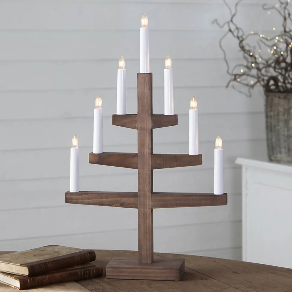 Kaarsenkandelaar Trapp uit eikenhout met zeven lichtbronnen